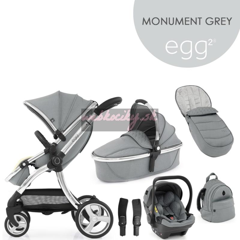 - nová priestrannejšia sedacia časť kočíka egg²® je o 7 cm vyššia (celková výška chrbtovej opierky je teraz 59 cm) a na podvozku je posadená o 3,6 cm vyššie. Možno ju sklopiť do 3 polôh a klasicky ponúka 2 možnosti umiestnenia na podvozku - smerom k rodičovi alebo čelom do okolia;