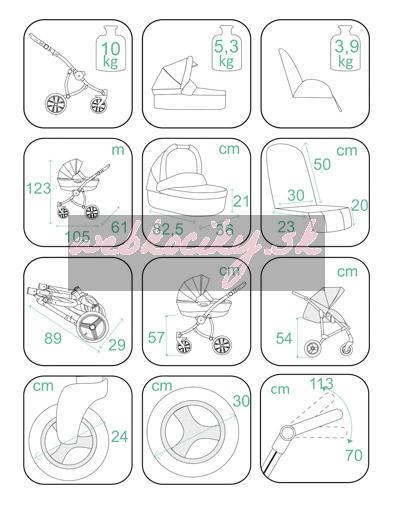 - možnosť osadiť na podvozok kočíka autosedačku Berber Carlo 0-10 kg alebo Maxi Cosi 0-13 kg (nie sú v cene),
