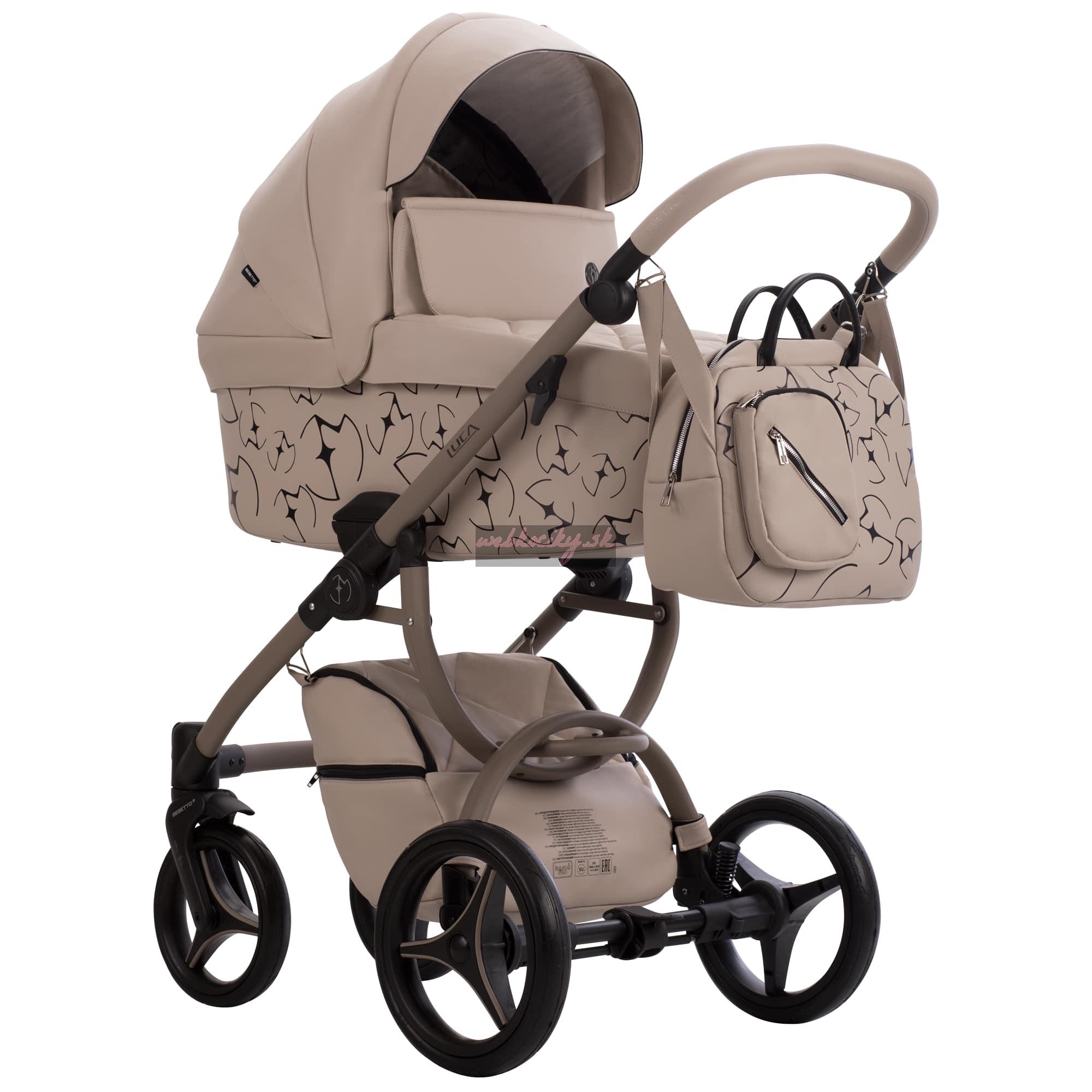 Luca New je predovšetkým elegancia. Jednofarebné čalúnenie a elegantná hnedá kožená rukoväť z neho robí ideálne riešenie pre ľudí, ktorí chcú elegantný vzhľad. Taška s kosouhlým tvarom vyzerá nielen skvele, ale je tiež veľmi priestranná a umožní vám nosiť potrebné doplnky pri prechádzkach s dieťaťom.