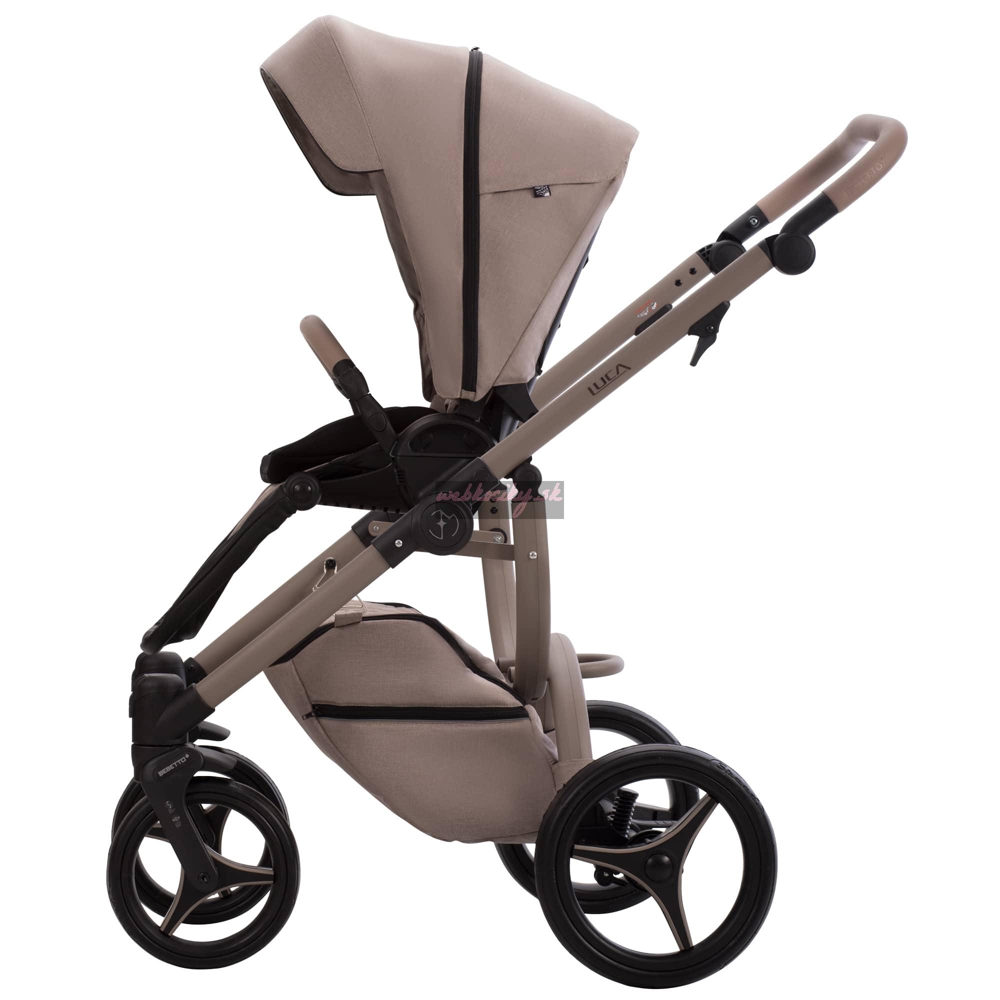 - kočík je vybavený novými odľahčenými a veľkými nízkoprofilovými nafukovacími kolesami alebo gélovými kolesami.