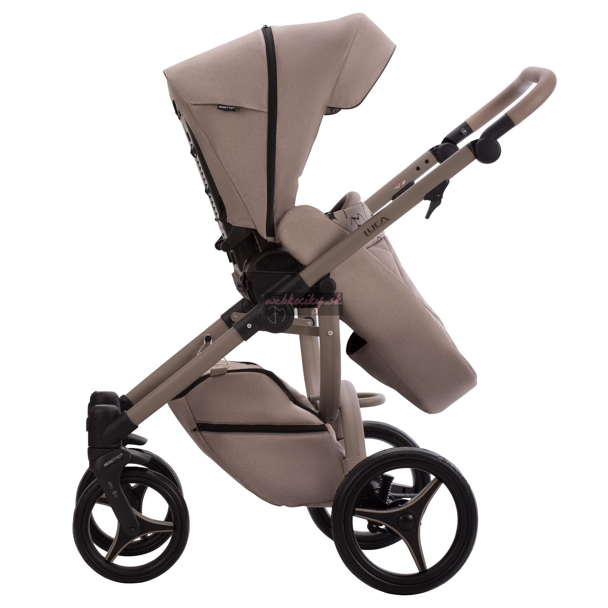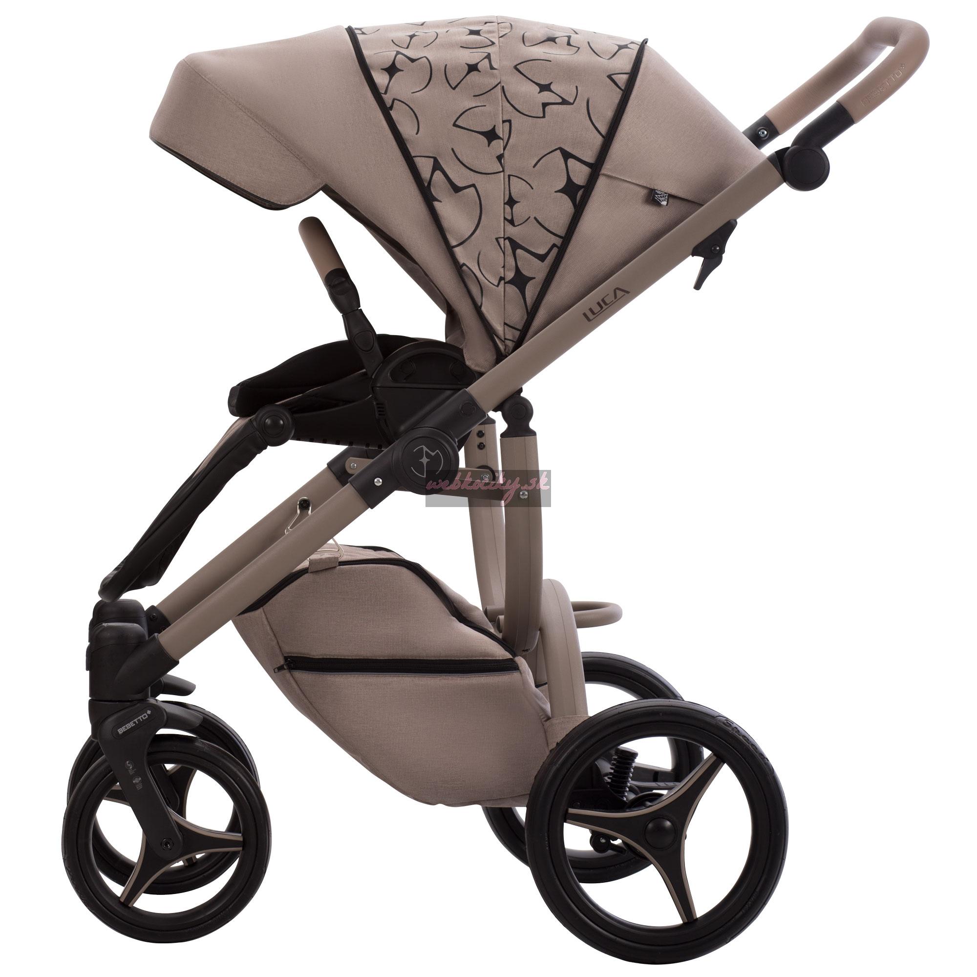 Luca New je predovšetkým elegancia. Jednofarebné čalúnenie a elegantná hnedá kožená rukoväť z neho robí ideálne riešenie pre ľudí, ktorí chcú elegantný vzhľad. Taška s kosouhlým tvarom vyzerá nielen skvele, ale je tiež veľmi priestranná a umožní vám nosiť potrebné doplnky pri prechádzkach s dieťaťom.