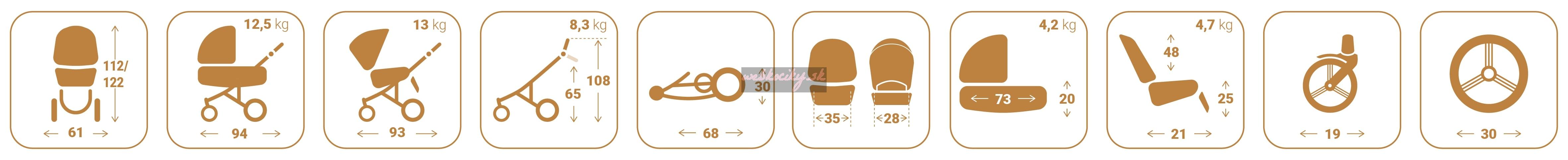 - Rozmer rozloženého kočíka: d, š, v, 106 x 61 x 119 cm