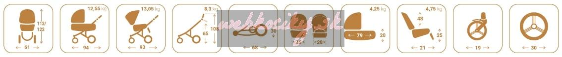 - Rozmer rozloženého kočíka: d, š, v, 106 x 61 x 119 cm
