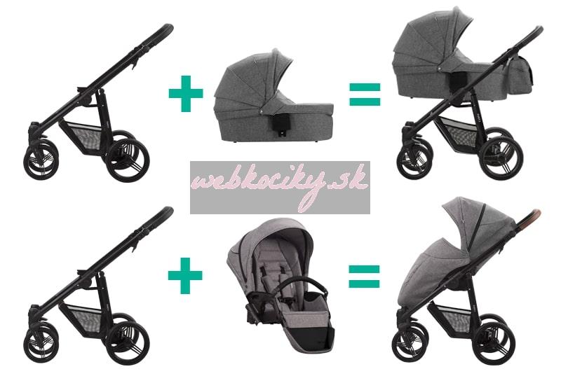 - Možnosť nakliknuť na konštrukciu kočíka autosedačku pomocou adaptérov (nie sú v cene a dokupujú sa samostatne).