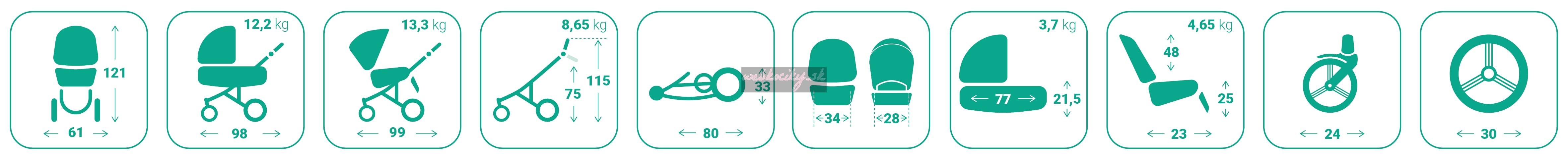 - hmotnosť kočíka: 12.4 kg