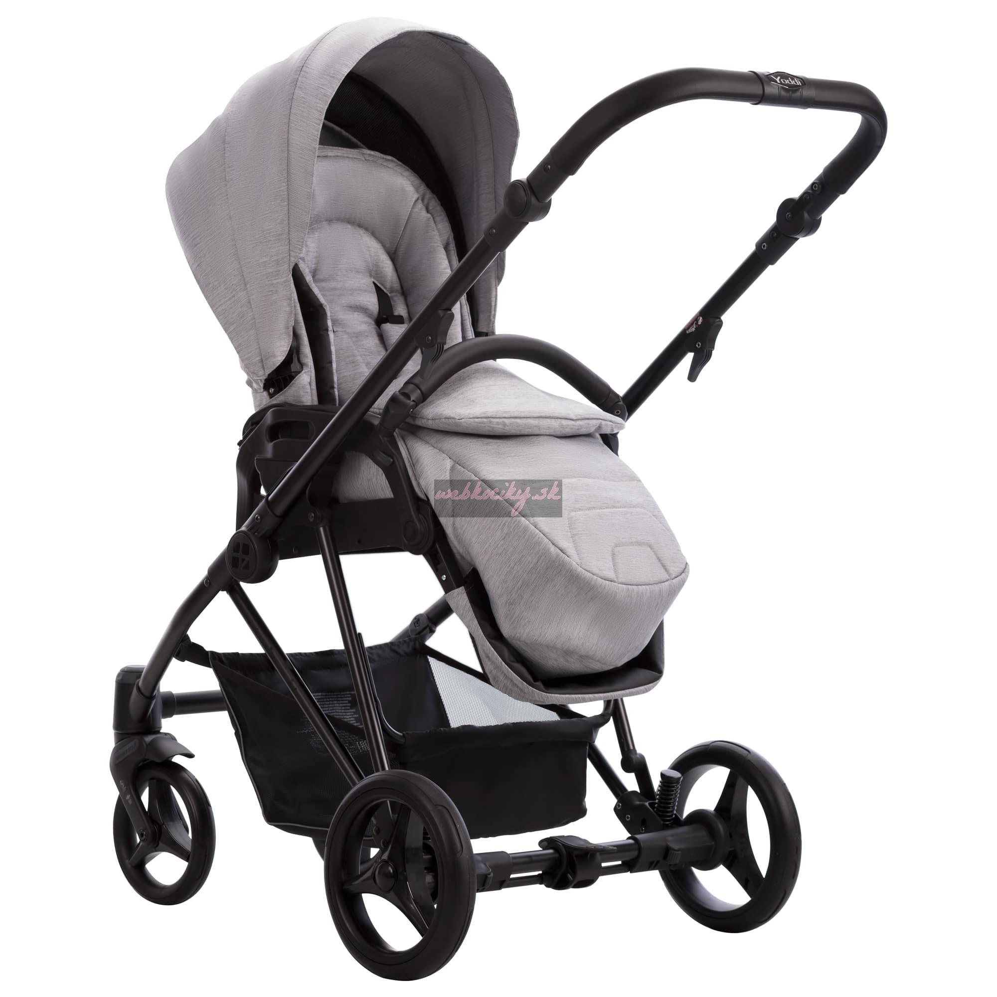 Bebetto Yoddi je kočík, ktorý si zamilujete. Je nielen najľahší (v hlbokej verzii váži len 10,5 kg), ale ponúka aj najmodernejšie funkcie, vyvinuté na základe potrieb a návrhov našich zákazníkov.Yoddi je úplne nový projekt založený na najnovších trendoch. Vďaka dvojitému klinovému dizajnu kabínkovej kabínky vyzerá kočík skvele.