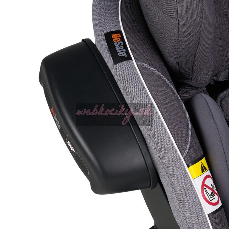 - Súčasťou autosedačky je aj prídavná bočná ochrana SIP+, ktorá sa nachádza na vonkajšej konštrukcii sedačky a ktorá pohlcuje energiu bočného nárazu. Táto ochrana výrazne znižuje zaťaženie trupu dieťaťa v prípade bočného nárazu do vozidla. Preto by sedačka mala byť vždy inštalovaná tak, aby ochrana SIP+ bola pri dverách vozidla.