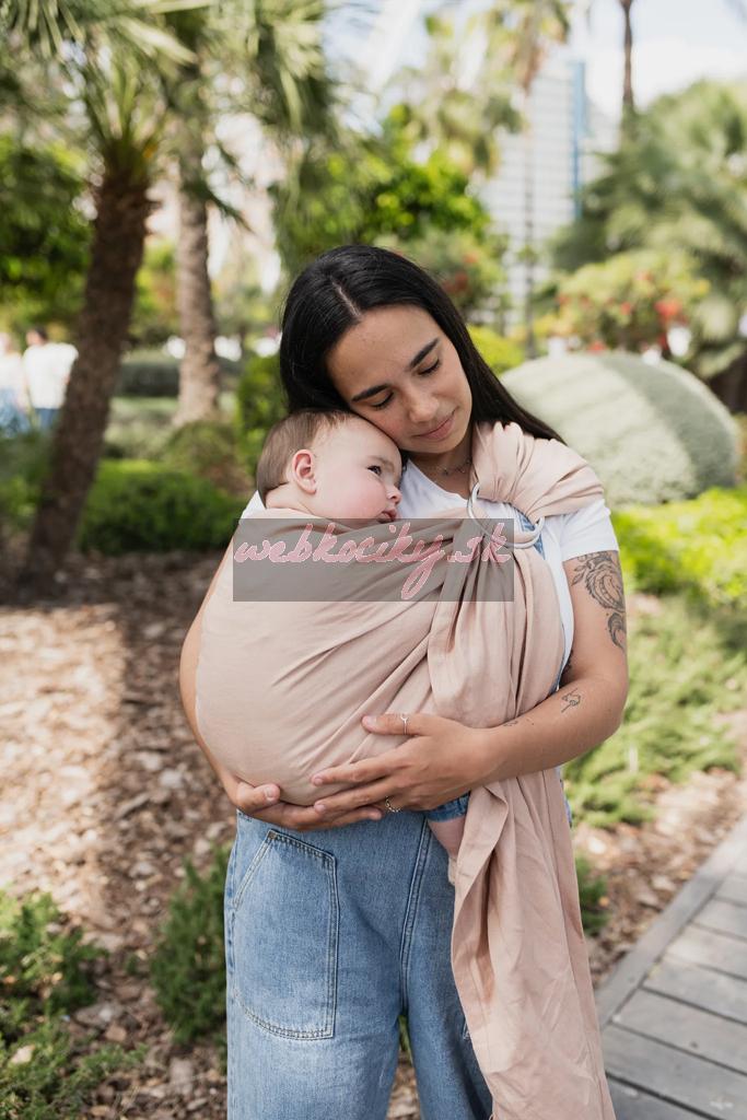- Bezproblémovo sa prispôsobí od novorodenca po batoľa jednoduchým potiahnutím látky cez krúžky.