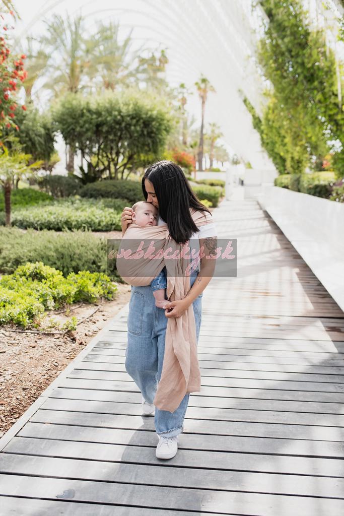 - Šatka je vhodná od novorodeneckého maznania až po batoľa (3 – 15 kg).
