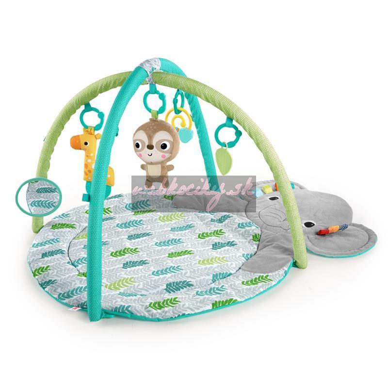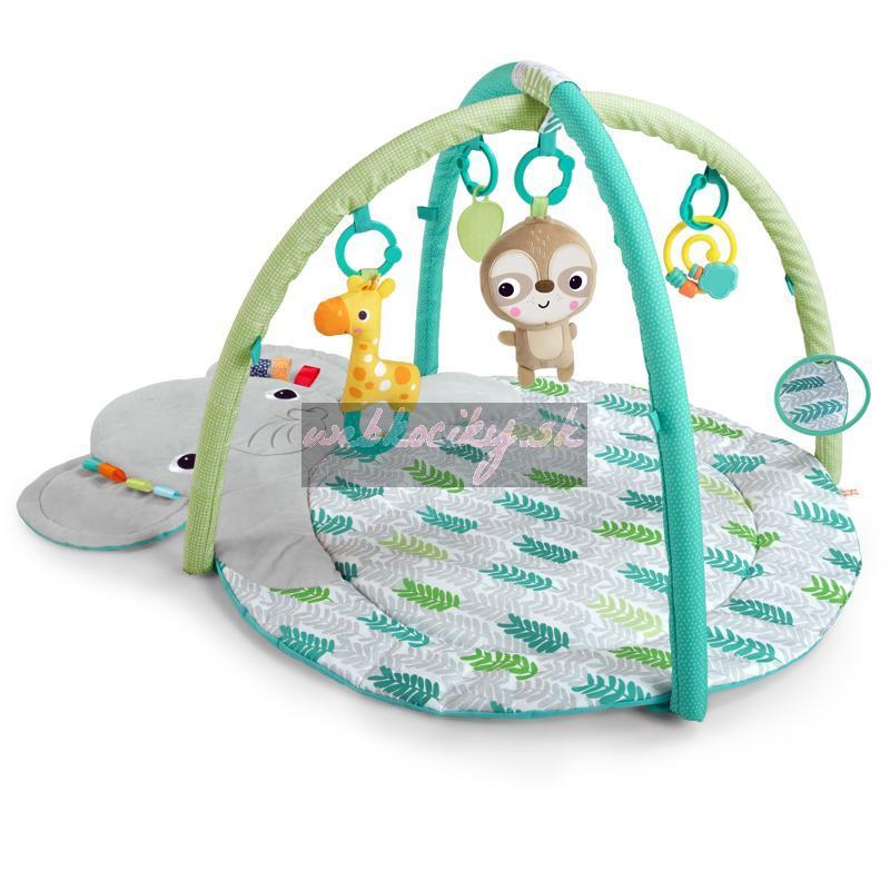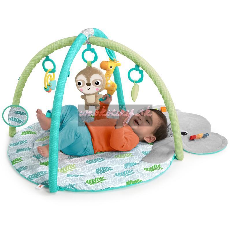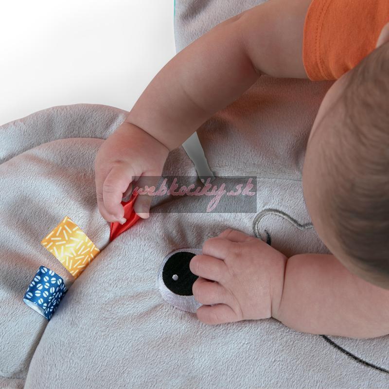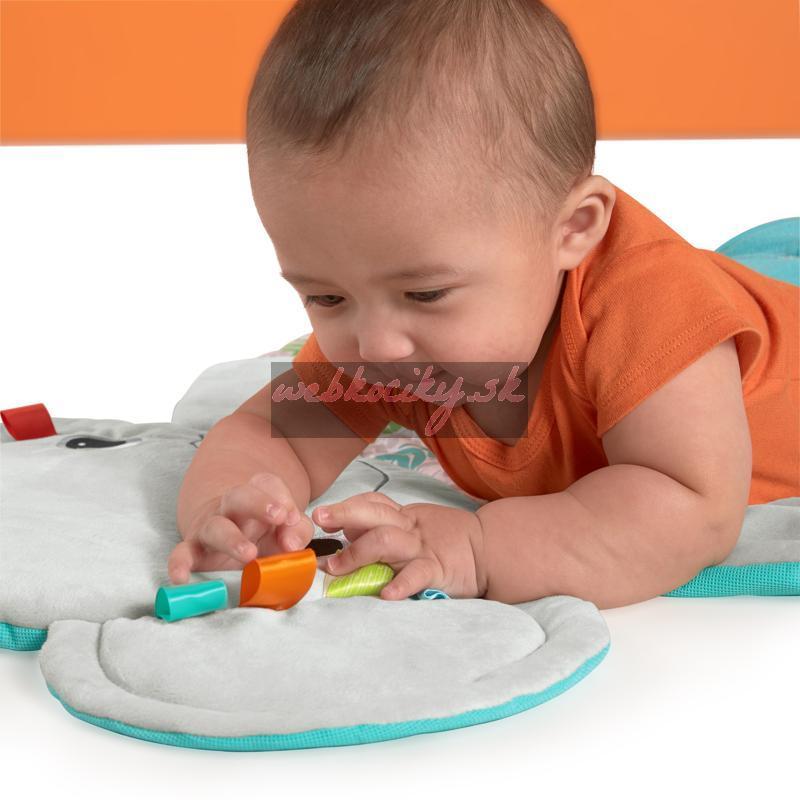 Tento sladký slon dá dieťaťu veľké objatie pri každom pritúlení sa. Hracia deka Bright Starts Hug-N-Cuddle Activity Gym vytvára najpohodlnejší a najkomfortnejší priestor pre dieťa, ktoré leží na brušku alebo chrbátiku. Ležte vedľa vášho drobčeka, keď sa pozerá a objavuje visiace hračky nad ním. Počas hry na brušku bude rád ťahať saténové stužky taggies, ktoré lemujú uši slona alebo si ho podmaní zrkadlo typu peek-a-boo. V akejkoľvek hracej pozícií bude mať váš malý objaviteľ chuť triasť, ťahať a stláčať 5 rôznych hračiek, ktoré sú súčasťou deky. Keď dieťa narastie, môžete odstrániť hrazdičku a premeniť slona na pohodlnú podložku na hranie a jemného, milého kamaráta, korý si zaslúži maznanie. Táto hracia deka vám a aj dieťaťu poskytne dostatok priestoru na hranie a pritúlenie aj v ďalšom období.