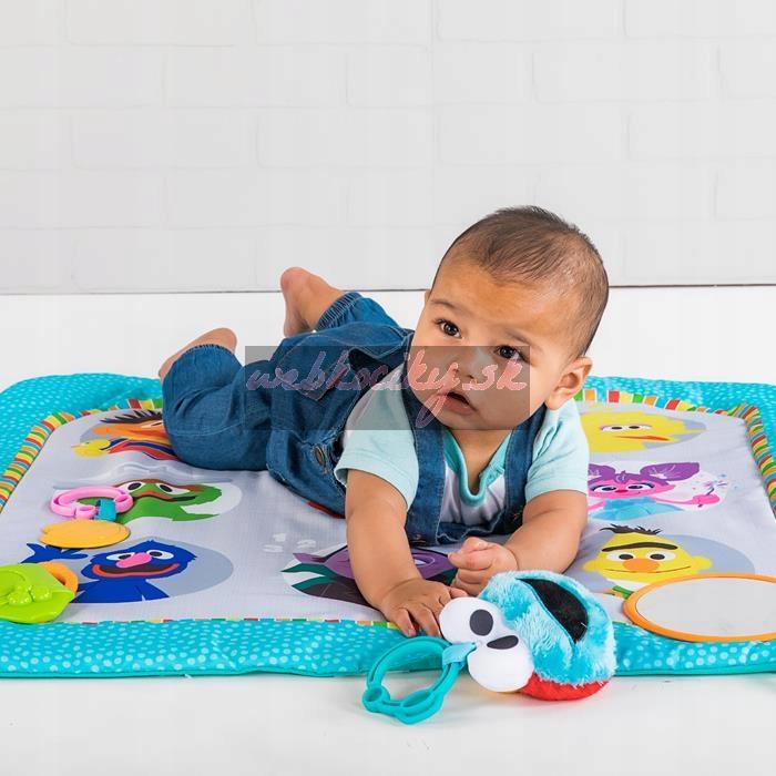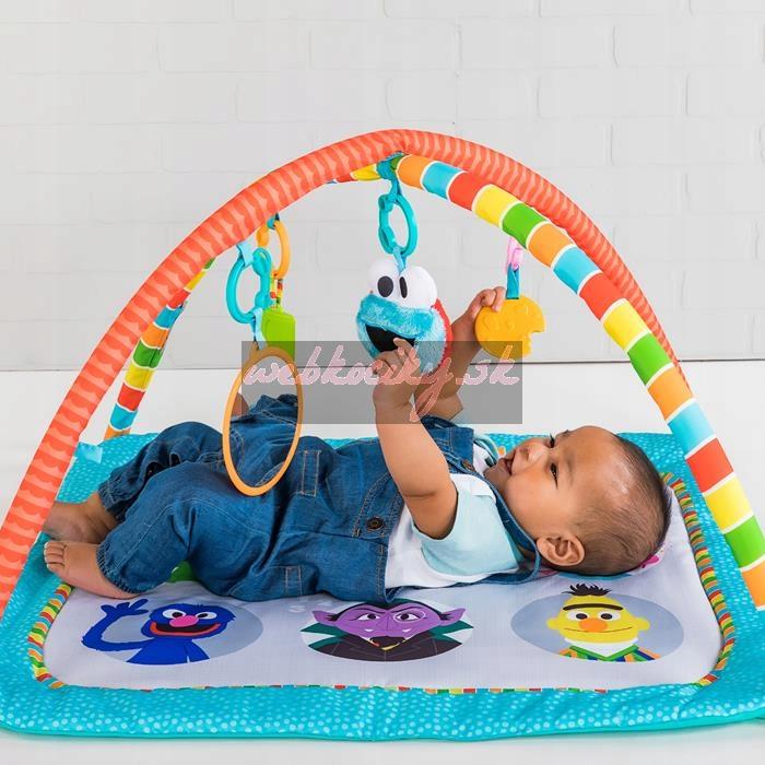 Pripravte sa na smiech a zábavu vďaka deke na hranie Sesame Street Friends od spoločnosti Bright Starts, ktorá dopraje Vášmu dieťatku veľa hier podporujúcich jeho rozvoj a stimuláciu zmyslov. Dieťatko sa zamiluje do tejto polstrovanej farebnej deky – či už počas ležania na chrbte alebo neskôr aj počas ležania na brušku! Štyri odnímateľné závesné hračky upútajú pozornosť vášho novorodenca a pomôžu mu sústrediť sa na nové prostredie. Odopnite hračky a umiestnite ich kdekoľvek na podložku, aby ste podporili rozvoj motorických schopností. Súčasťou je aj bezpečnostné zrkadielko, ktoré podporuje u dieťatka sebapoznávanie. Keď vaše dieťa začne rásť a túlať sa po deke, hrazdičku jednoducho odstráňte. Odnímateľná hrazdička umožní deku jednoducho zložiť a uskladniť, tak aby nezaberala veľký priestor.