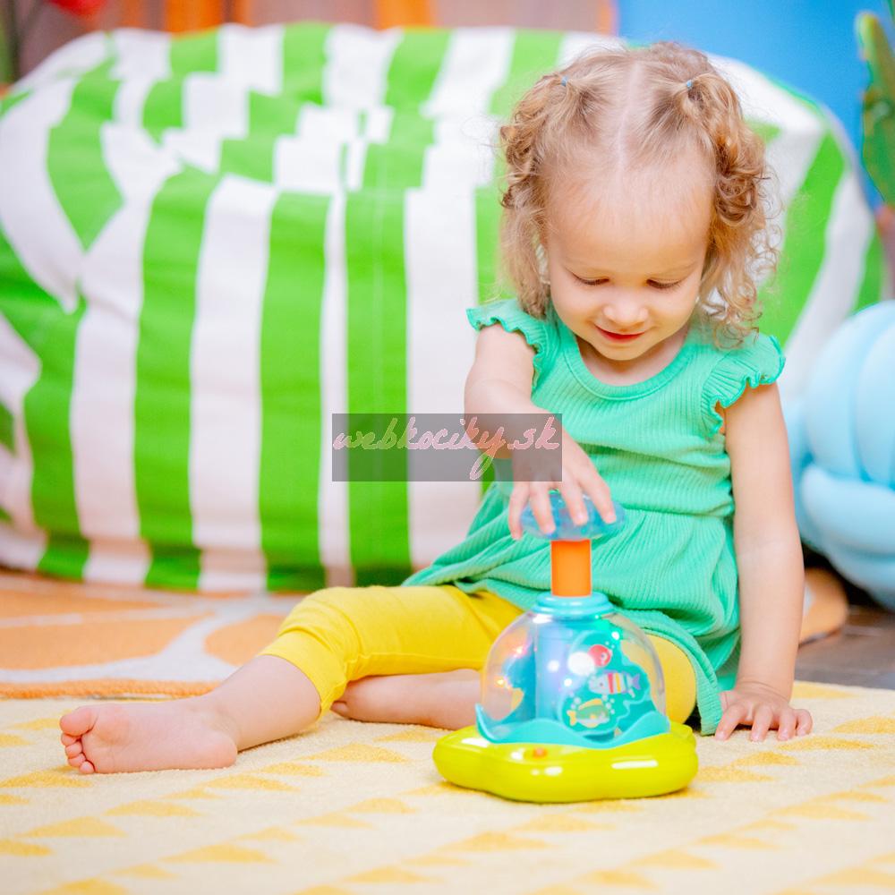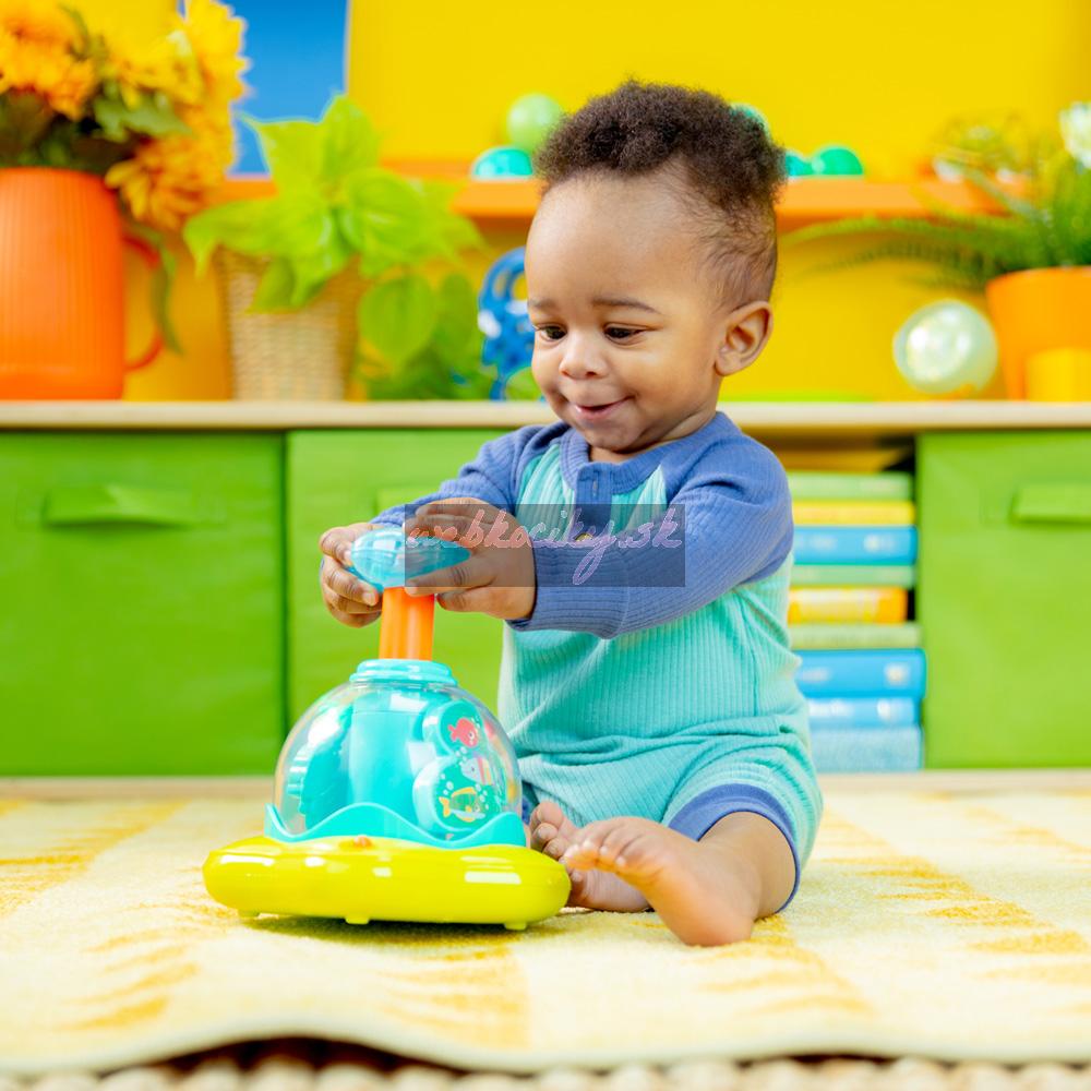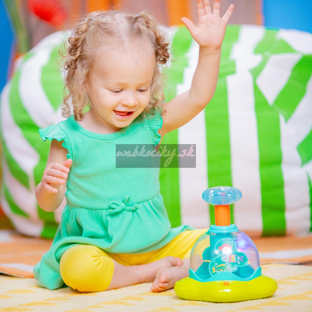 S čarovným dotykom dieťatka sa veci rozbehnú a rozžiaria! Stačí jedno stlačenie tejto úžasnej hračky a želanie vášho dieťaťa sa určite splní! Bude jasať a hýkať nad neuveriteľnými svetielkami a melódiami, ktoré sa roztancujú po miestnosti. A uprostred všetkej tej zábavy táto hračka pomáha podporovať jemnú motoriku! Hračka je vhodná pre detičky od 6 mesiacov. Váš malý tanečník bude premýšľať, ktorá pesnička bude hrať ďalej, keď ju bude znova a znova stláčať.