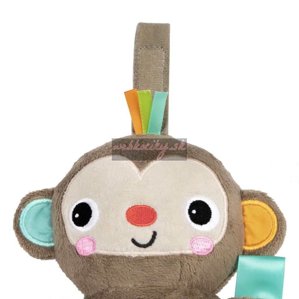 Tento plyšový opičí kamarát má priložený odkaz, že sa bude zdržiavať všade tam, kam sa vy alebo dieťa vyberiete. Hračka sa ľahko pripevňuje na kočíky, autosedačky, nosiče a ďalšie zariadenia, aby zaujala dieťa a prinútila ho skúmať a rozvíjať tak zábavu a zručnosti počas cestovania.