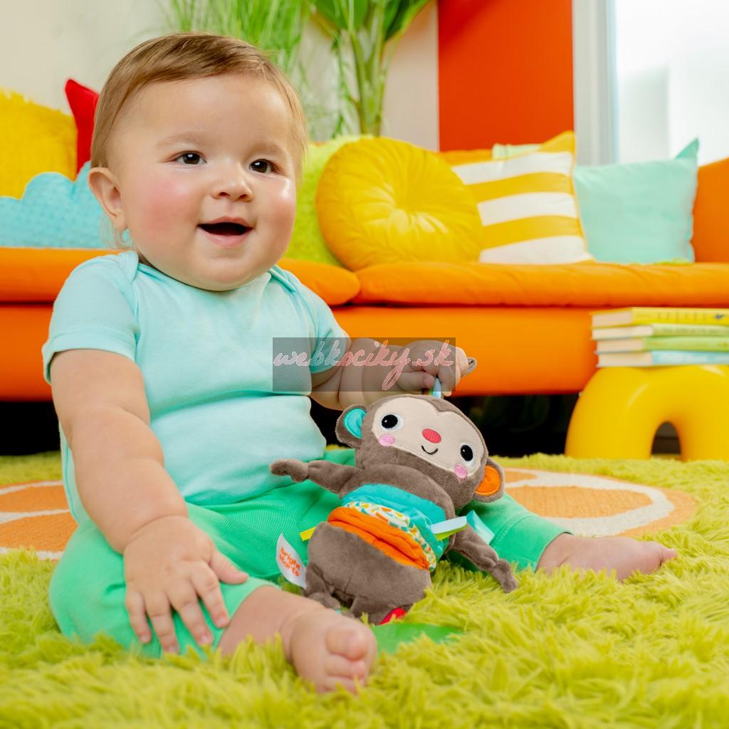 BRIGHT STARTS Hračka s melódiou na C krúžku Pull, Play & Boogie™ opica 0m+