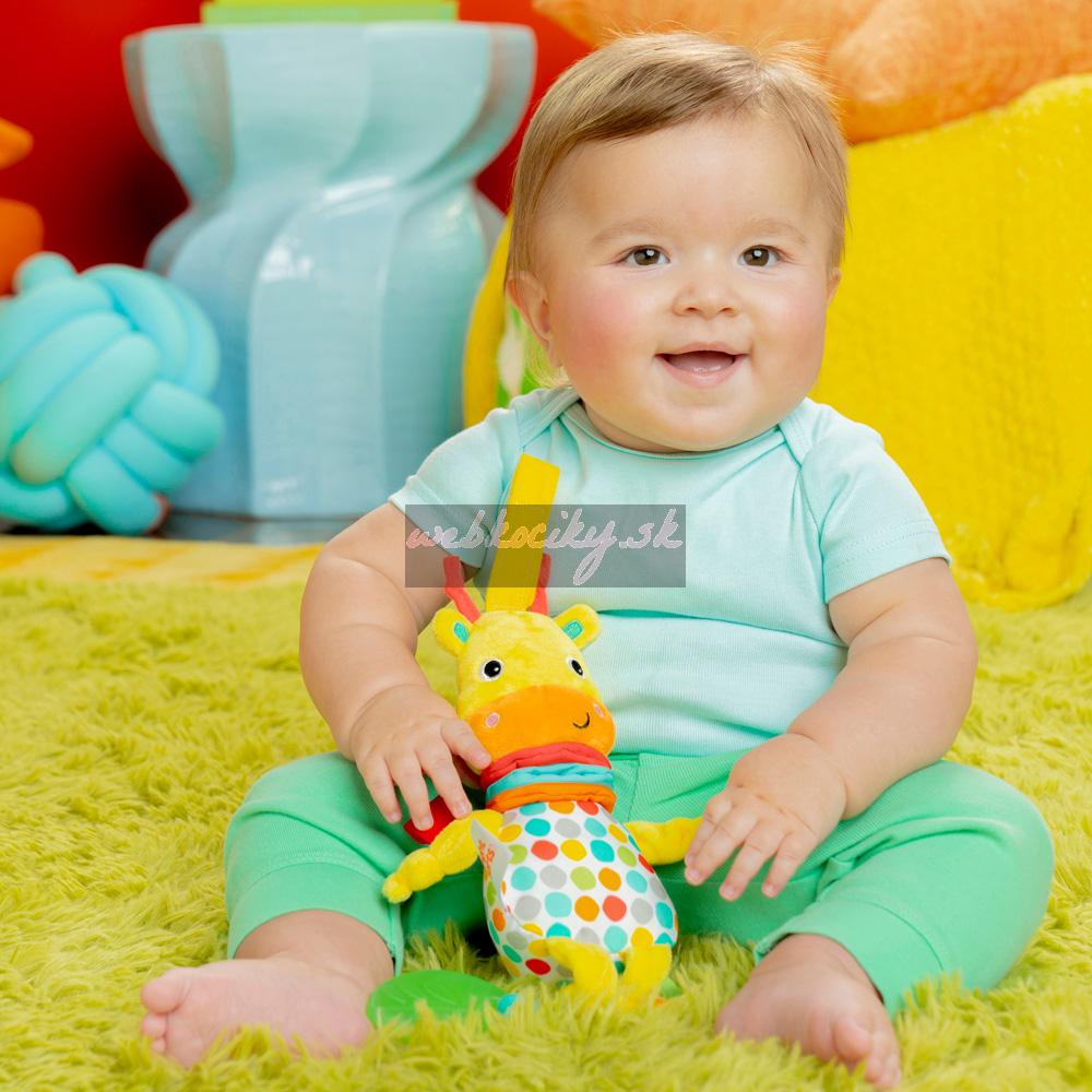 Tento plyšový žirafí kamarát má priložený odkaz, že sa bude zdržiavať všade tam, kam sa vy alebo dieťa vyberiete. Hračka sa ľahko pripevňuje na kočíky, autosedačky, nosiče a ďalšie zariadenia, aby zaujala dieťa a prinútila ho skúmať a rozvíjať tak zábavu a zručnosti počas cestovania.