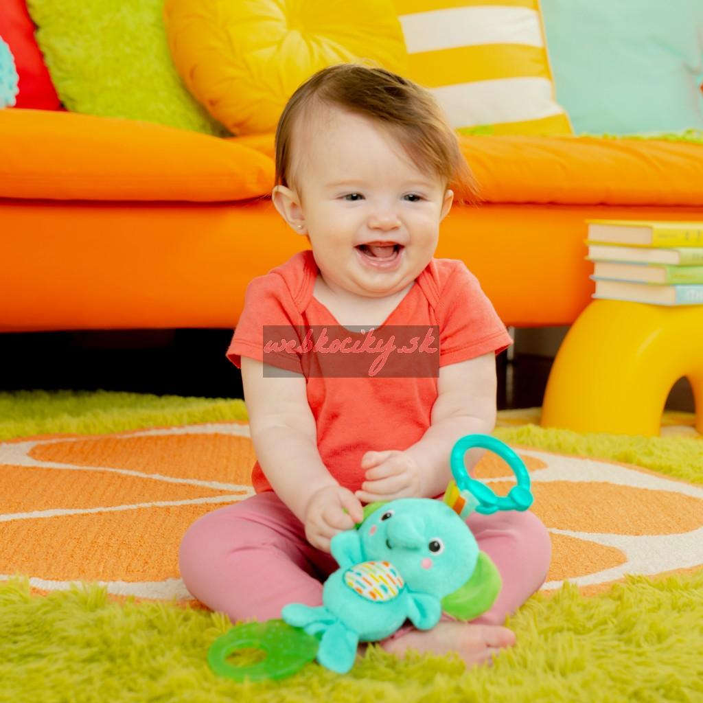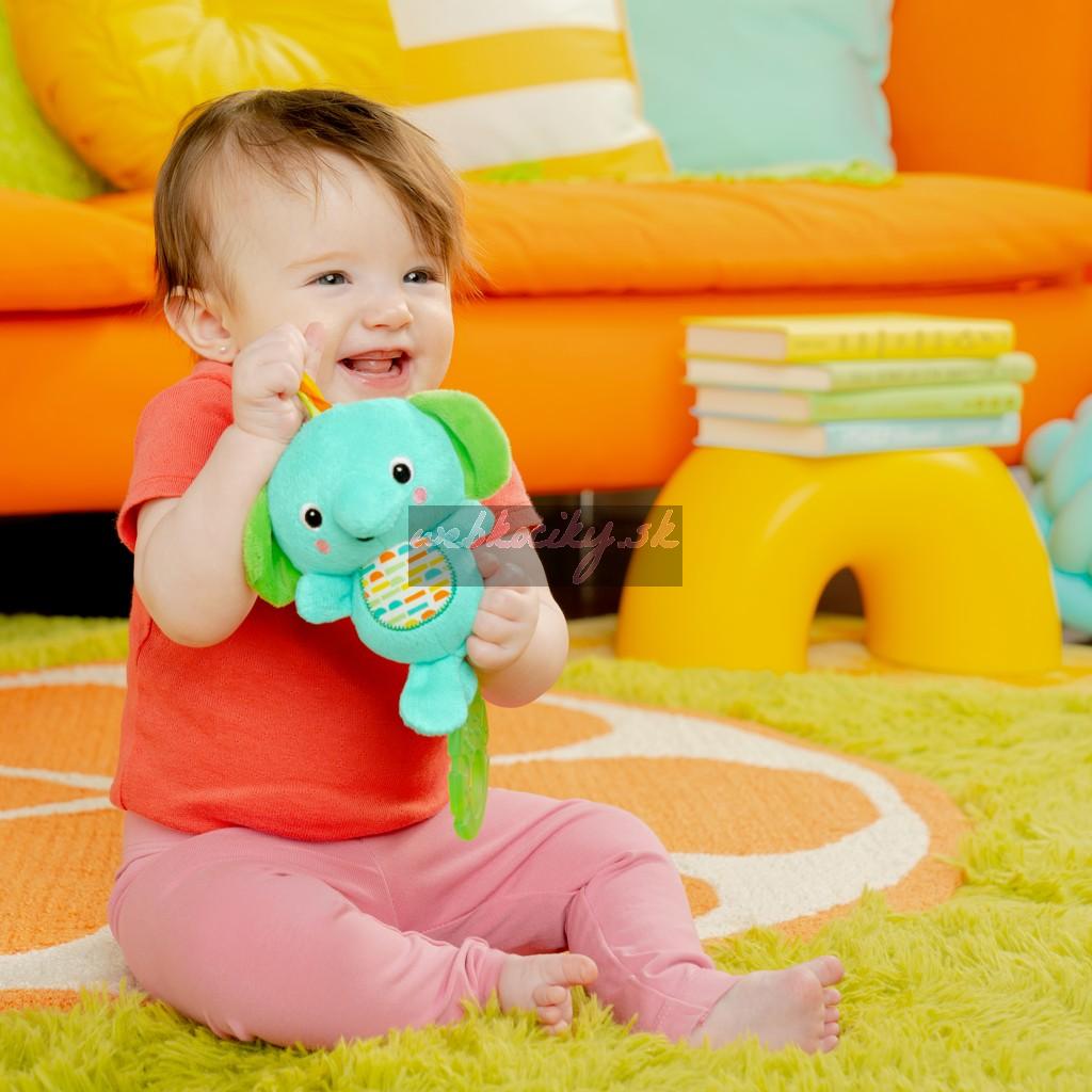 Keď bábätko zatiahne za zelený list, jeho kamarát z džungle zahrá 4 rôzne melódie! Vďaka stimulujúcim farbám, textúram a zvukom bude dieťatko na svojho nového slonieho kamaráta siahať a chytať ho, zatiaľ čo vy si budete užívať sledovanie rozvoja nových zručností hlavne počas prvého roka dieťaťa.