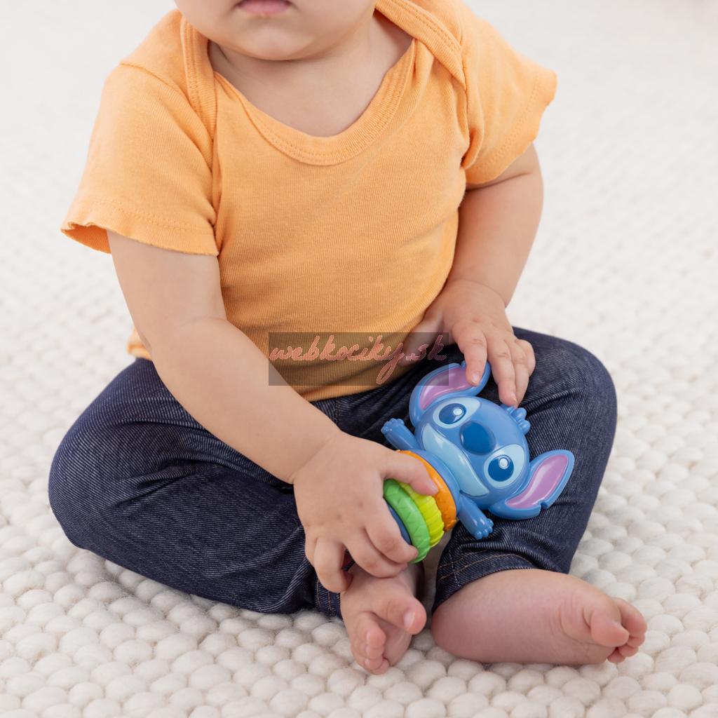 - Zábavná zmyslová hračka s motivom Stitch – otáčacie krúžky s kliknutím a vstavaná hrkálka