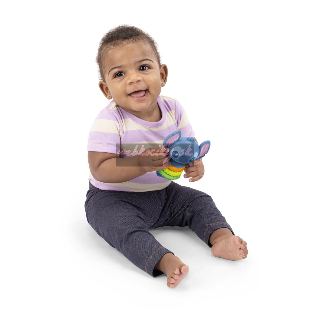 Zábava na plný plyn so zmyslovou hračkou s obľúbeným Stitchom! Pestrofarebný dizajn a tropický nádych premenia každý hrací čas na malé dobrodružstvo. Dieťatko môže otáčať textúrované krúžky, ktoré vydávajú príjemné klikacie zvuky a trasením hrať ako s hrkálkou. Hračka stimuluje zrak, sluch a jemnú motoriku a to všetko naraz! Vďaka ľahkej a kompaktnej konštrukcii je ideálna aj na cesty, jednoducho sa zmestí do prebaľovacej tašky. Vhodná pre bábätká už od narodenia. Skvelý tip na darček k narodeniu, narodeninám, Vianociam či iným príležitostiam.
