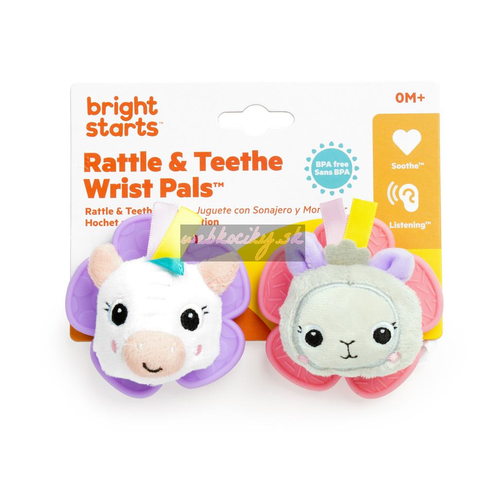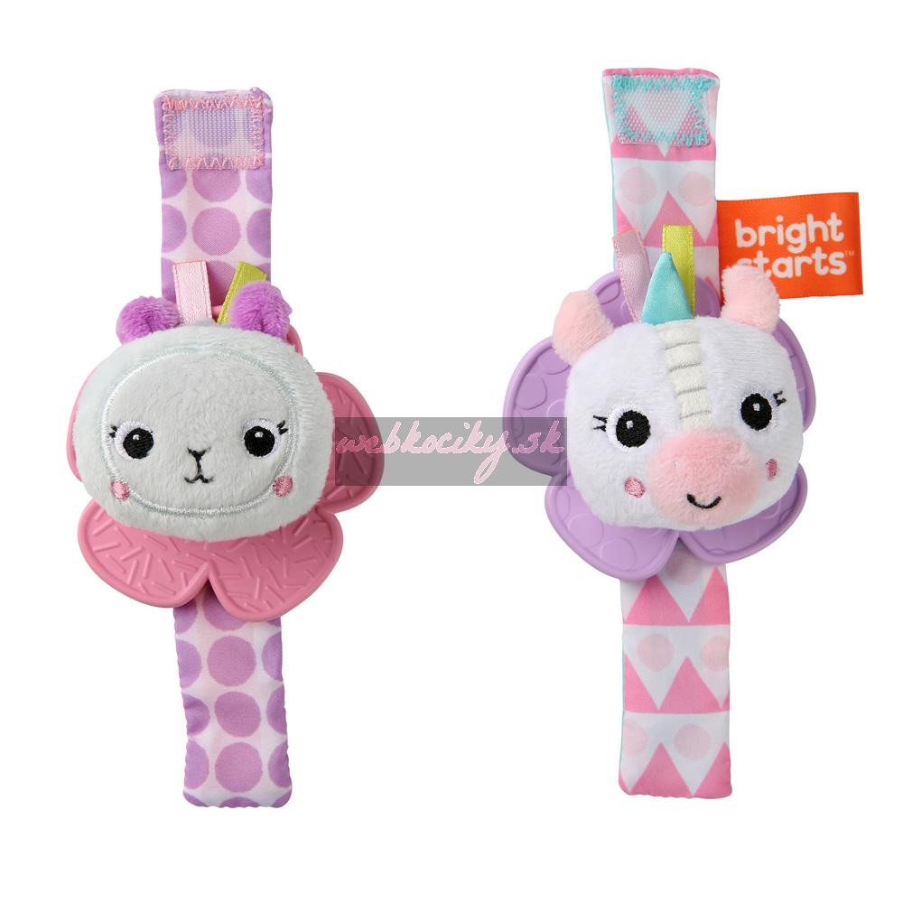 BRIGHT STARTS Hrkálka s hryzačkou na ruku 2 ks jednorožec/lama 0m+