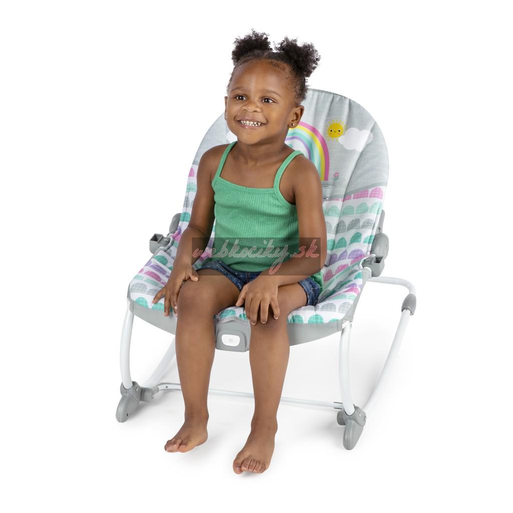 - Získajte roky používania s týmto multifunkčným húpatkom! Húpatko Bright Starts Rosy Rainbow pre dojčatá a batoľatá sa mení z hojdacieho na stacionárne sedadlo a rastie spolu s dieťaťom až do 18 kg. Prepínanie z hojdacieho na stacionárne sedadlo so stabilizačným predným stojanom.