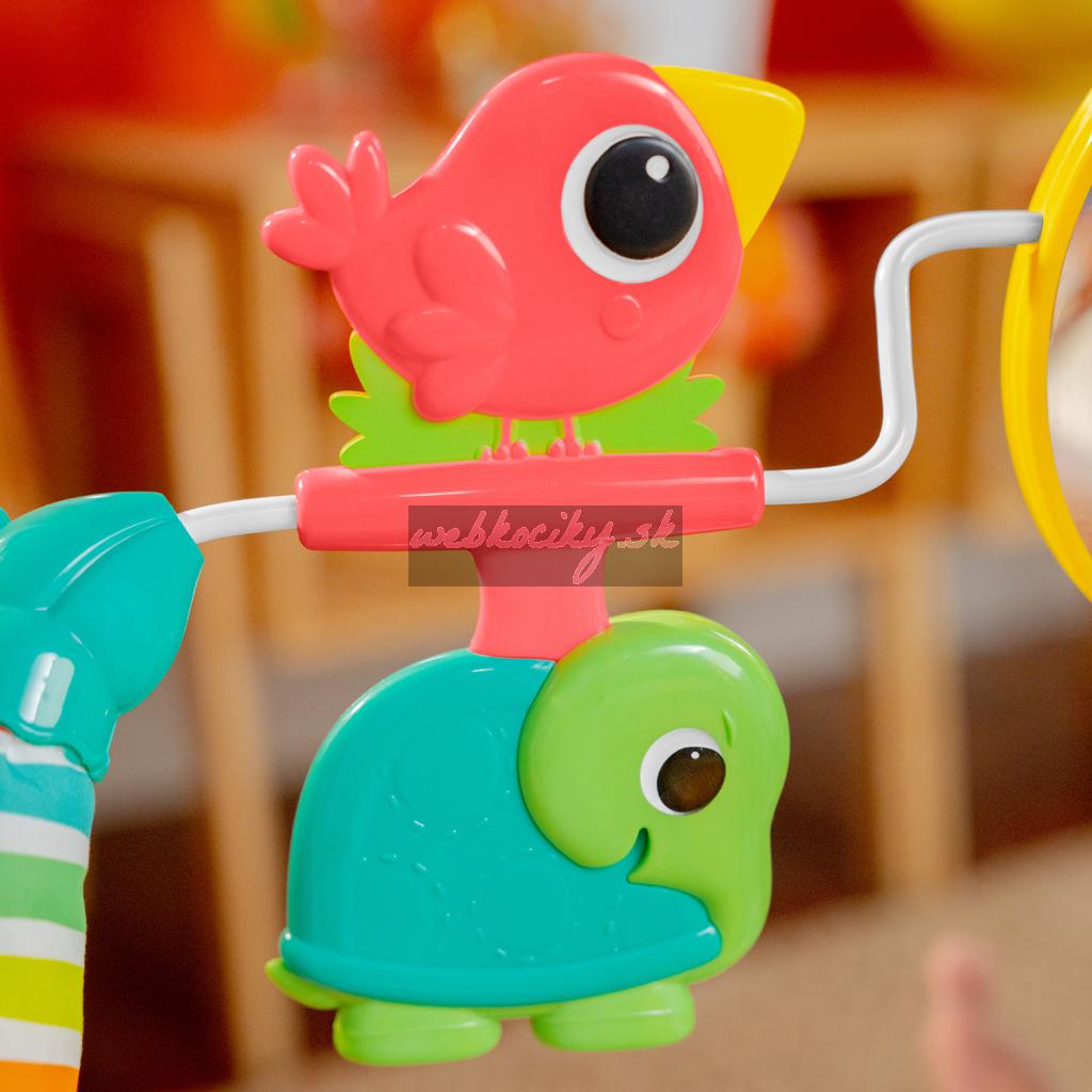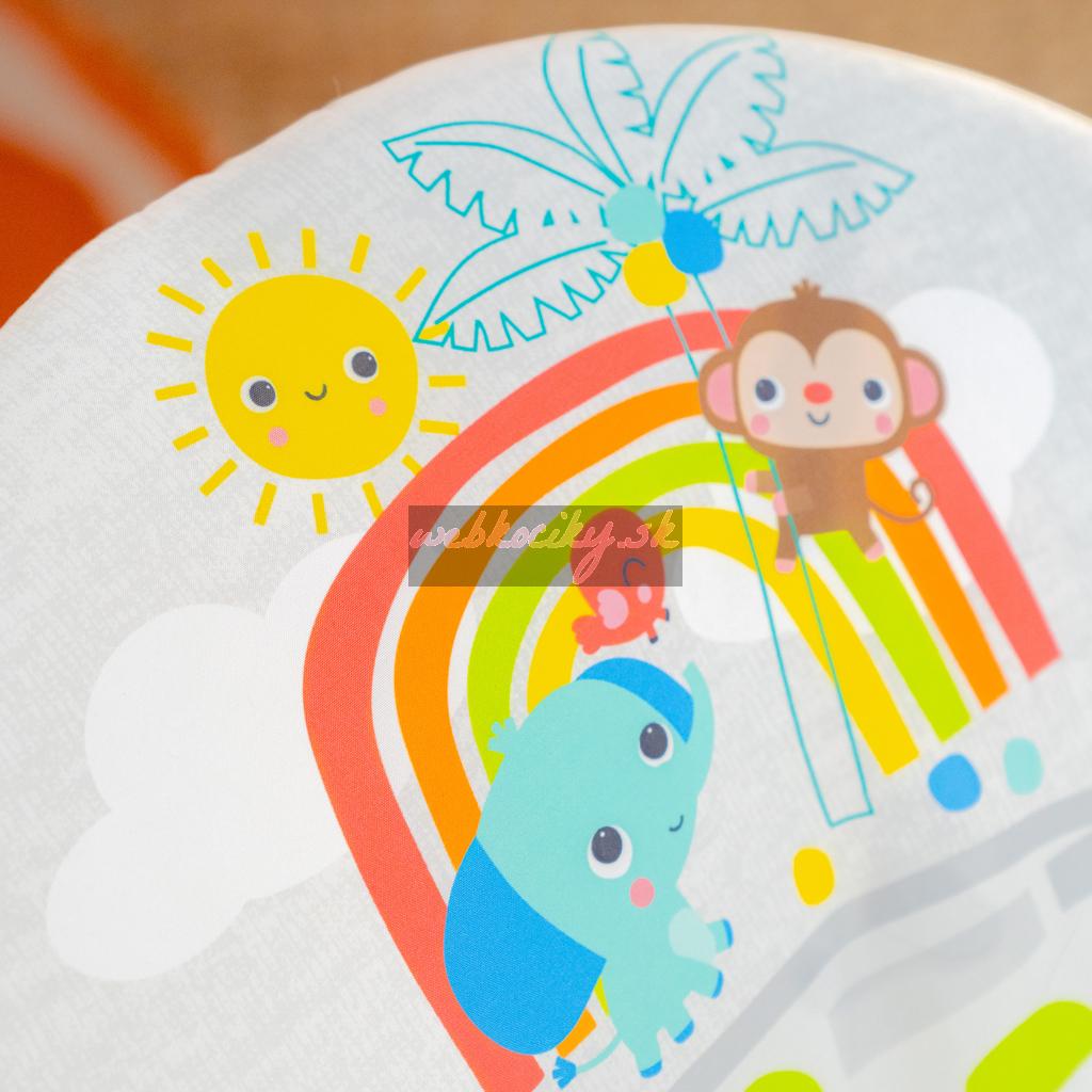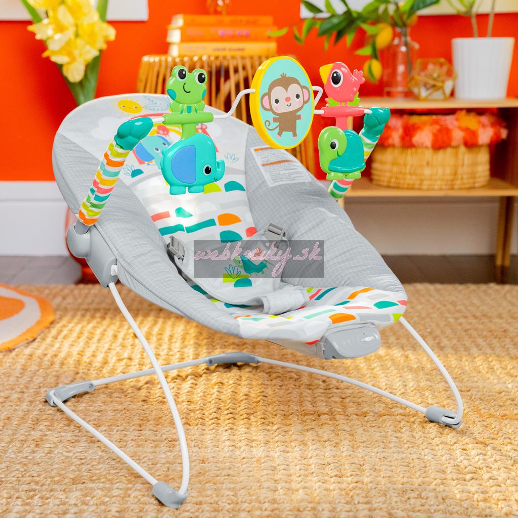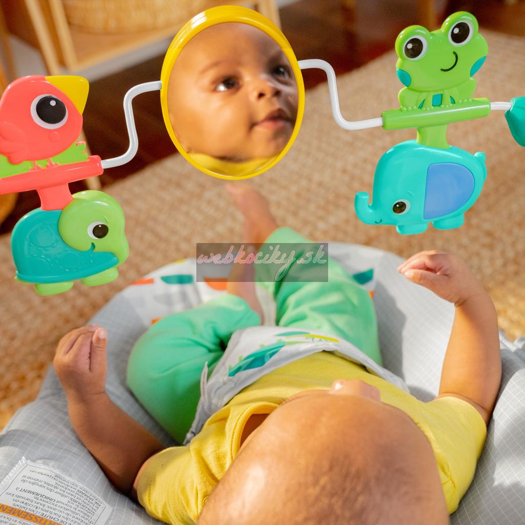 Toto pohupujúce lehátko pomáha vášmu zvedavému dieťatku hrať sa a precvičovať motorické zručnosti. Nemotorná opička a priatelia vykúzlia Vášmu dieťatku úsmev na perách. Môže sa natiahnuť k netopierovi a roztočiť hračky visiace zhora. Na druhej strane opičky je zrkadielko bezpečné pre detičky slúžiace na predstavenie vlastného odrazu.