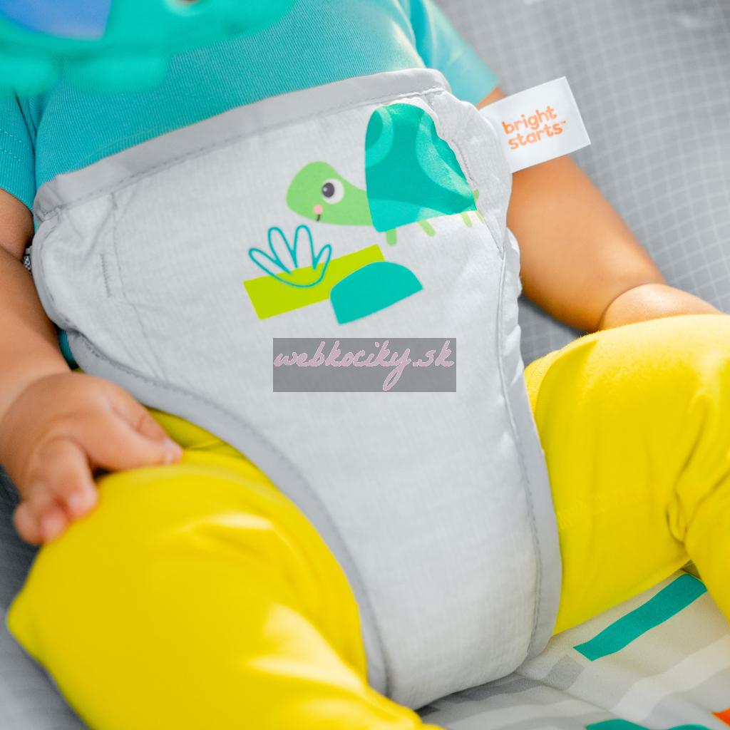 Hlboké pohodlné sedadlo, protišmykové nožičky a 3-bodové bezpečnostné pásy robia z tohto detského lehátka bezpečné miesto na hranie.