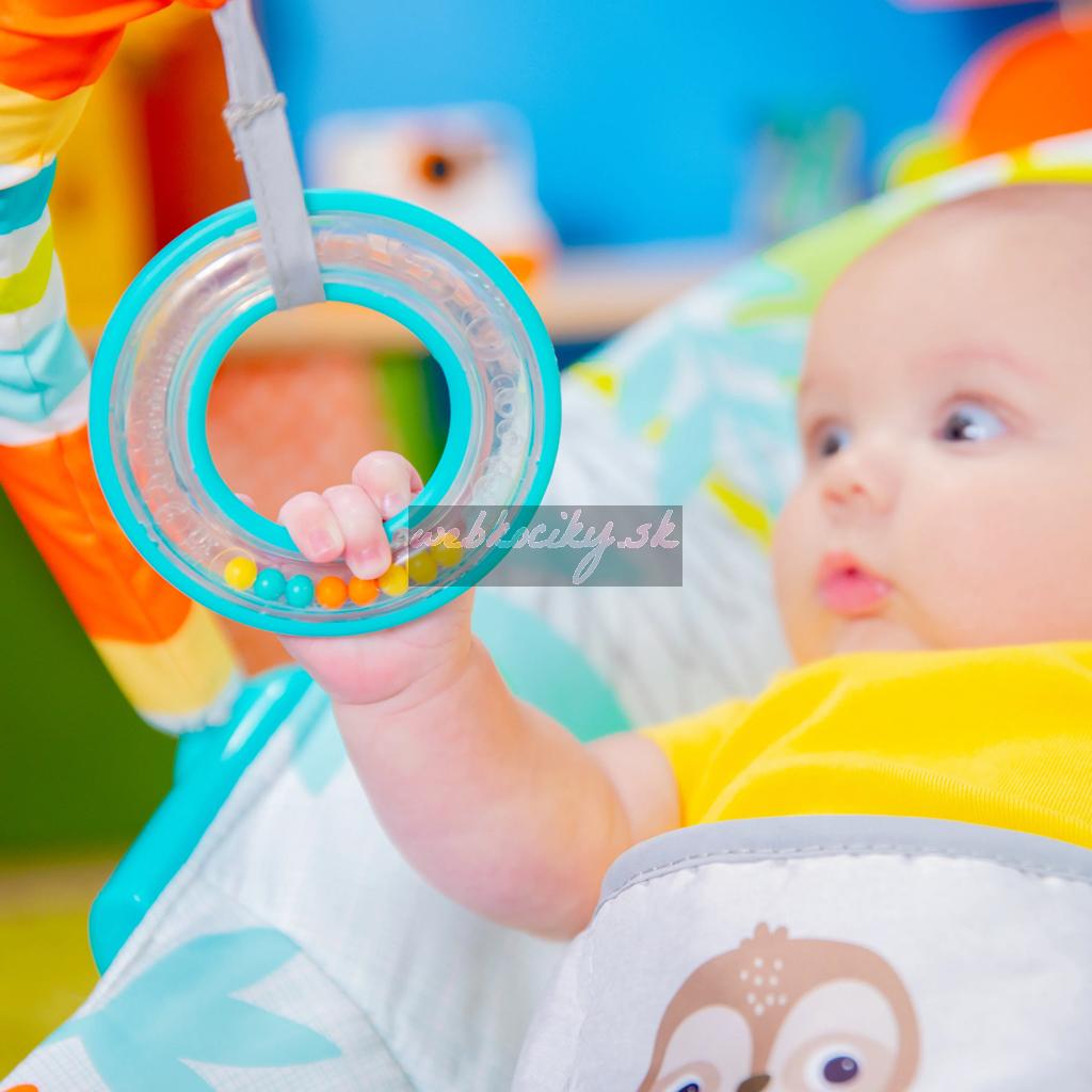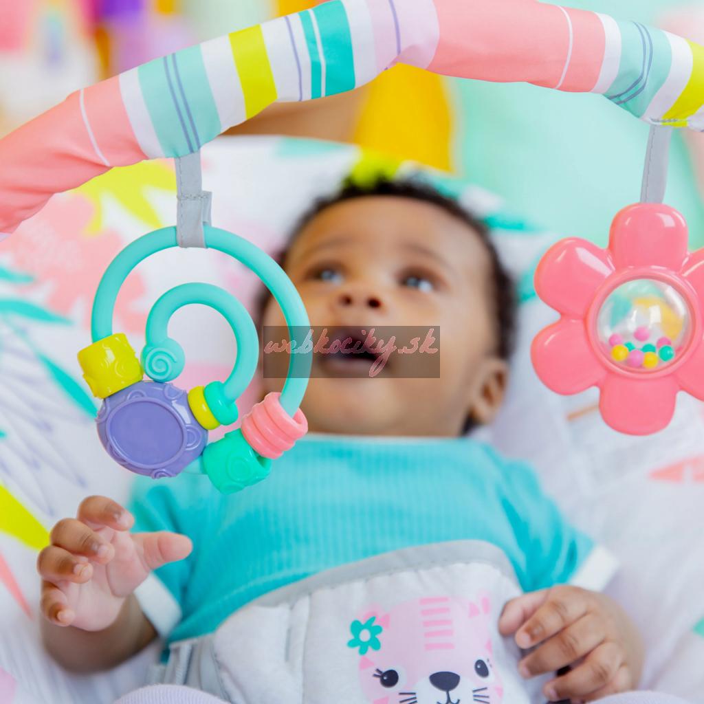 Vibračné lehátko Rainforest Vibes od Bright Starts je tým najdivokejším miestom na sedenie a hranie! Pripravte sa na široké úsmevy, keď sa vaše bábätko začne naťahovať za dvoma farebnými hračkami visiacimi zhora. Vaše malé dieťatko si zamiluje klikanie a hrkálku s korálkami.