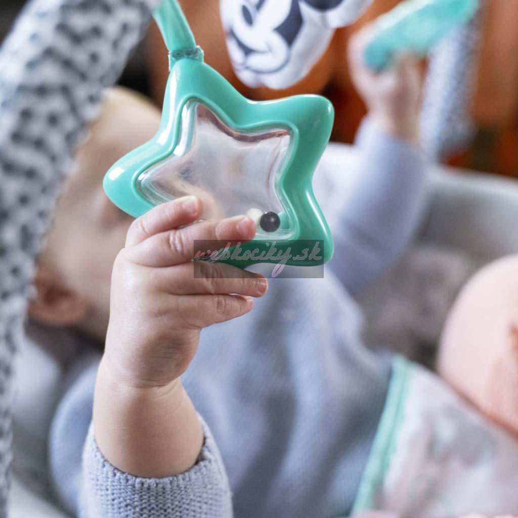 - Odnímateľná hrazdička pre lepší prístup k bábätku obsahuje 3 závesné hračky.