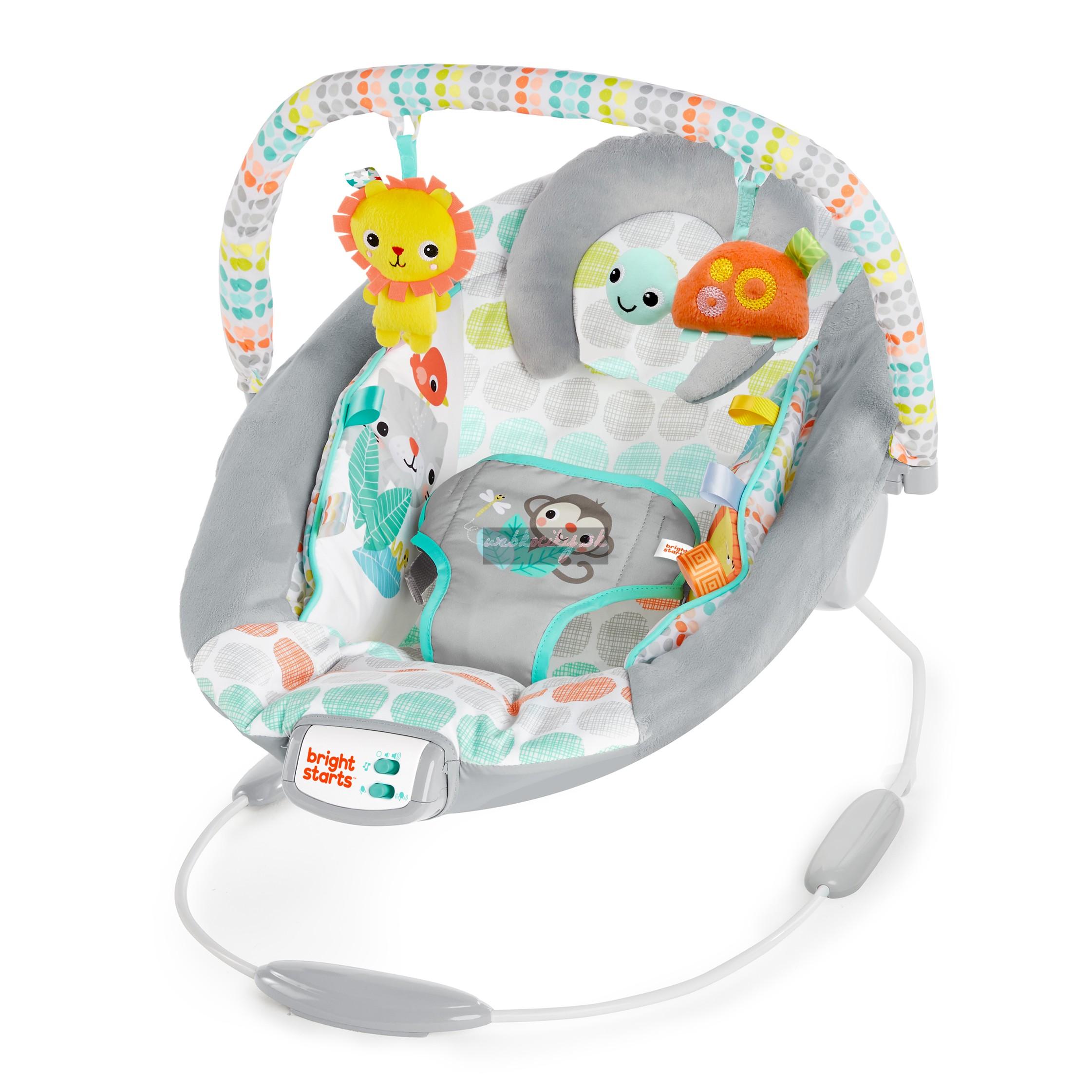 Zábava je na prvom mieste! Lehátko Whimsical Wild od Bright Starts bude rozveseľovať bábätko v jednom kuse. Pohodlná sedacia časť poskytuje perfektné pohodlie a podporu s upokojujúcimi vibráciami, plyšovými tkaninami, integrovanou novorodeneckou vložkou a odnímateľnou opierkou hlavy. Farebné a pútavé postavičky robia toto lehátko zábavným! Bábätko bude milovať upokojujúce pocity z farebných saténových stužiek Taggies. Lehátko ponúka 7 príjemných melódií a automatické vypnutie po 15 minútach. Hrazdička je jednoducho odnímateľná jednou, pre ľahký prístup k bábätku. Nastaviteľný 3-bodový bezpečnostný pás bude celý čas ochraňovať váš poklad.
