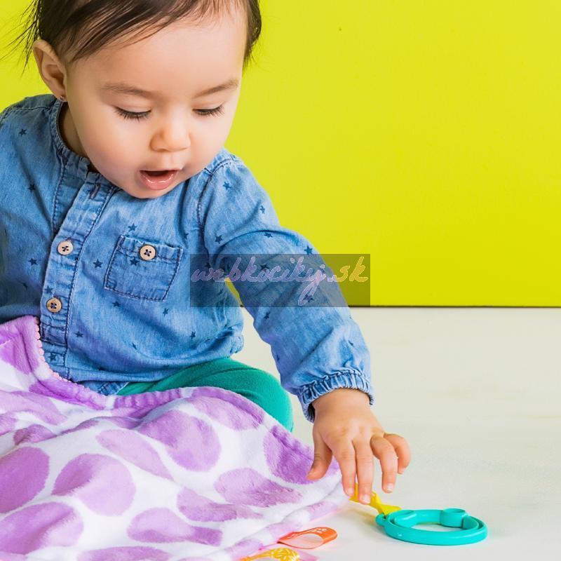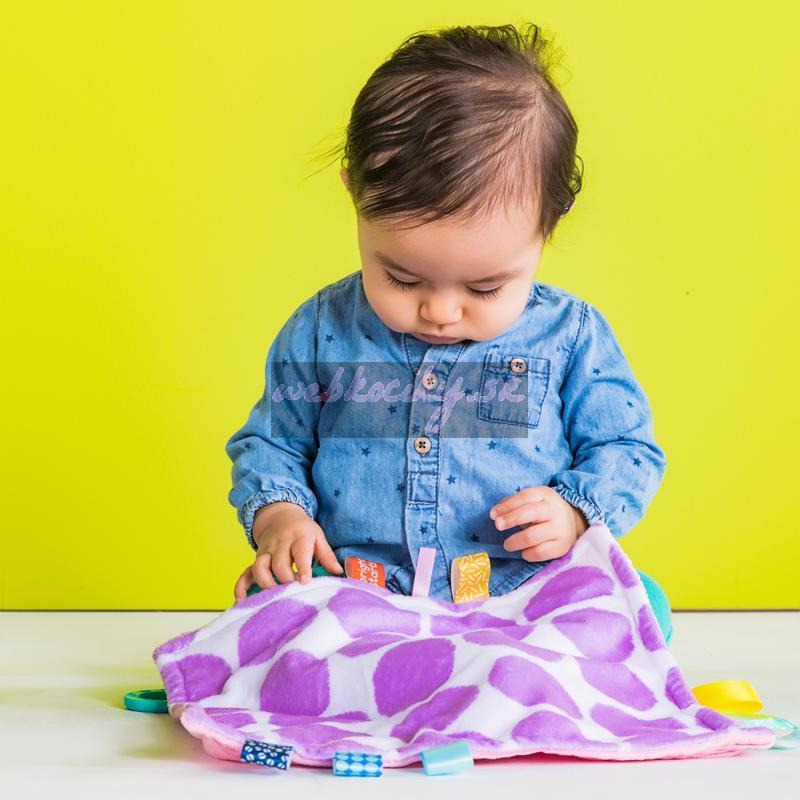 BRIGHT STARTS Maznacia dečka na C krúžku Little Taggies fialové bodky 0m+