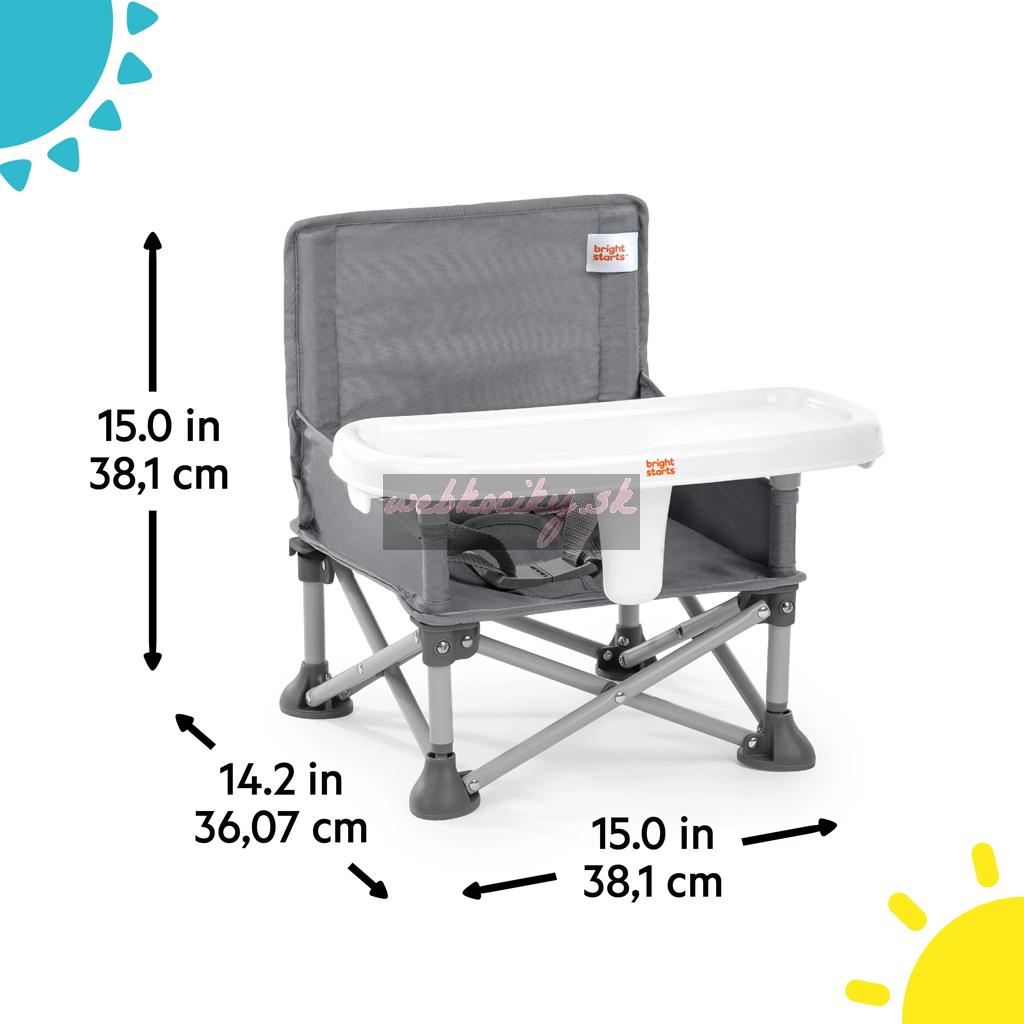 - Bright Starts Pop ‘N Sit je dokonalá stolička, ktorá rastie s dieťaťom! 3 režimy: podlahová stolička, jedálenská stolička s odnímateľným pultíkom a podsedák pre batoľatá; ideálna na výlety, večery doma, víkendové výjazdy a ďalšie príležitosti