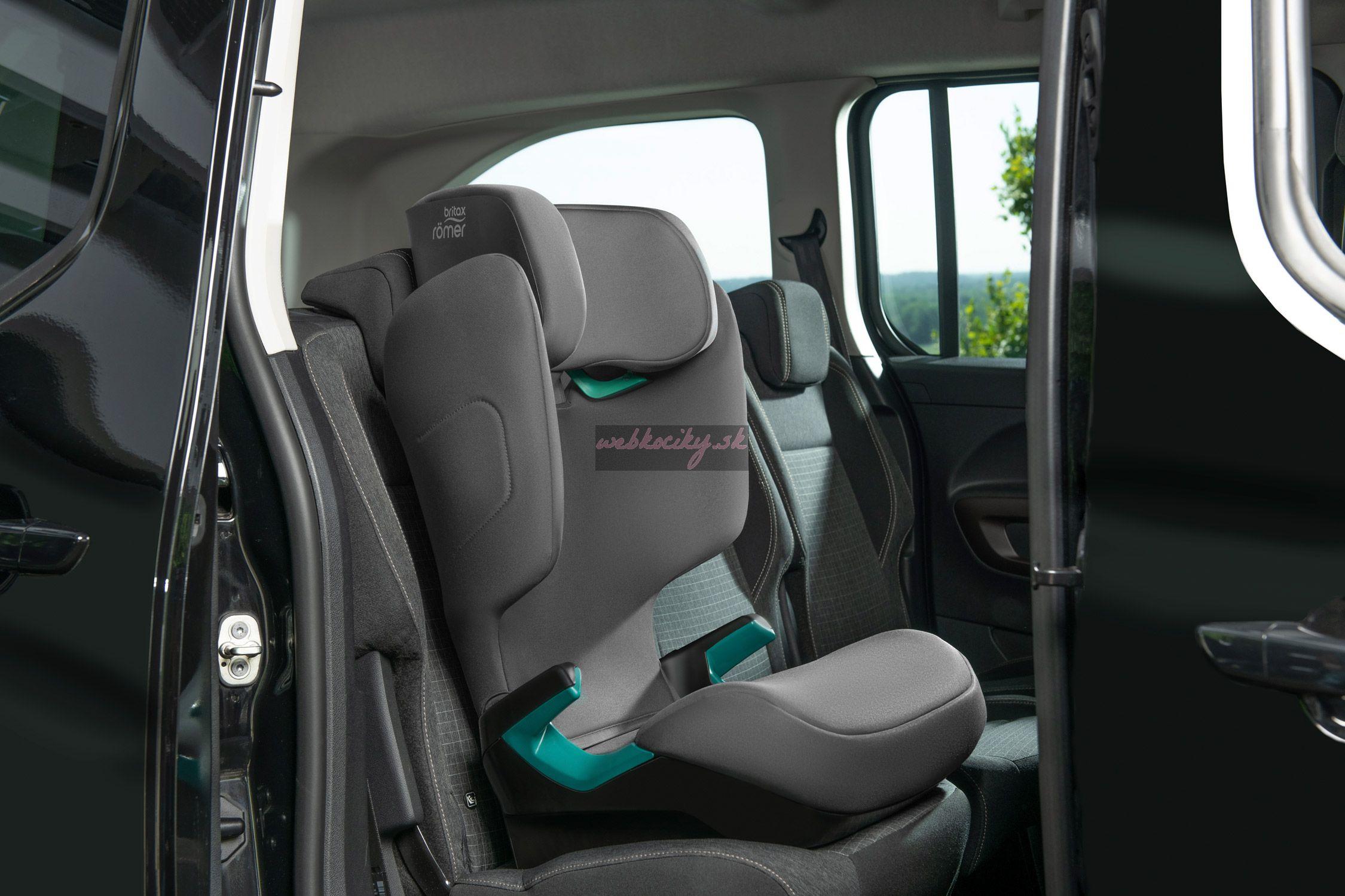 Textilné poťahy sedadiel s dôkladným polstrovaním a optimalizovanou plochou na sedenie zabezpečujú ešte väčšie pohodlie na dlhších cestách. Úzka konštrukcia modelu ADVENTURE PLUS umožňuje inštaláciu troch sedadiel vedľa seba na zadných sedadlách vozidla. Pomocné označenia na opierke hlavy uľahčujú správne nastavenie sedadla pri presune z jedného vozidla do druhého.