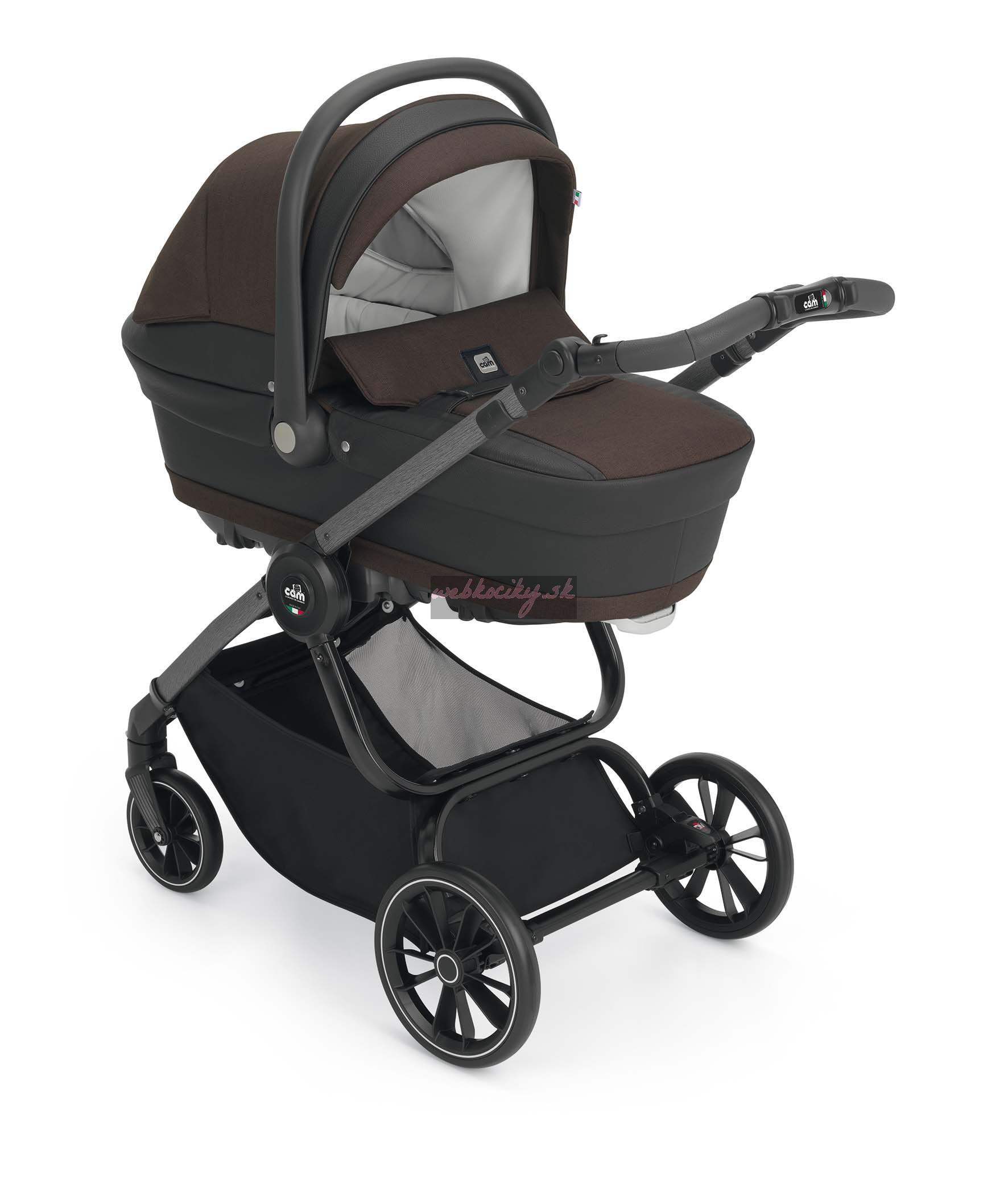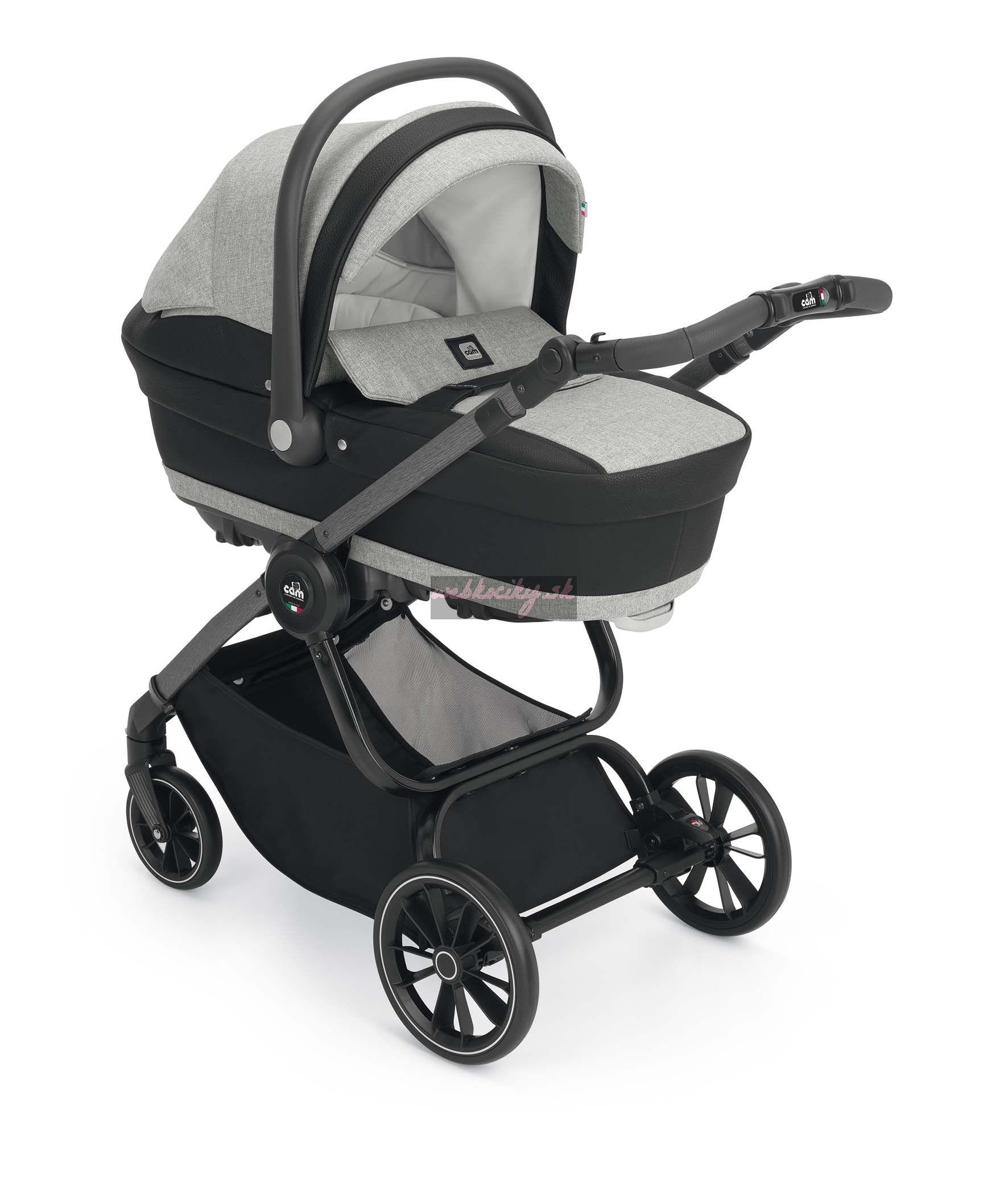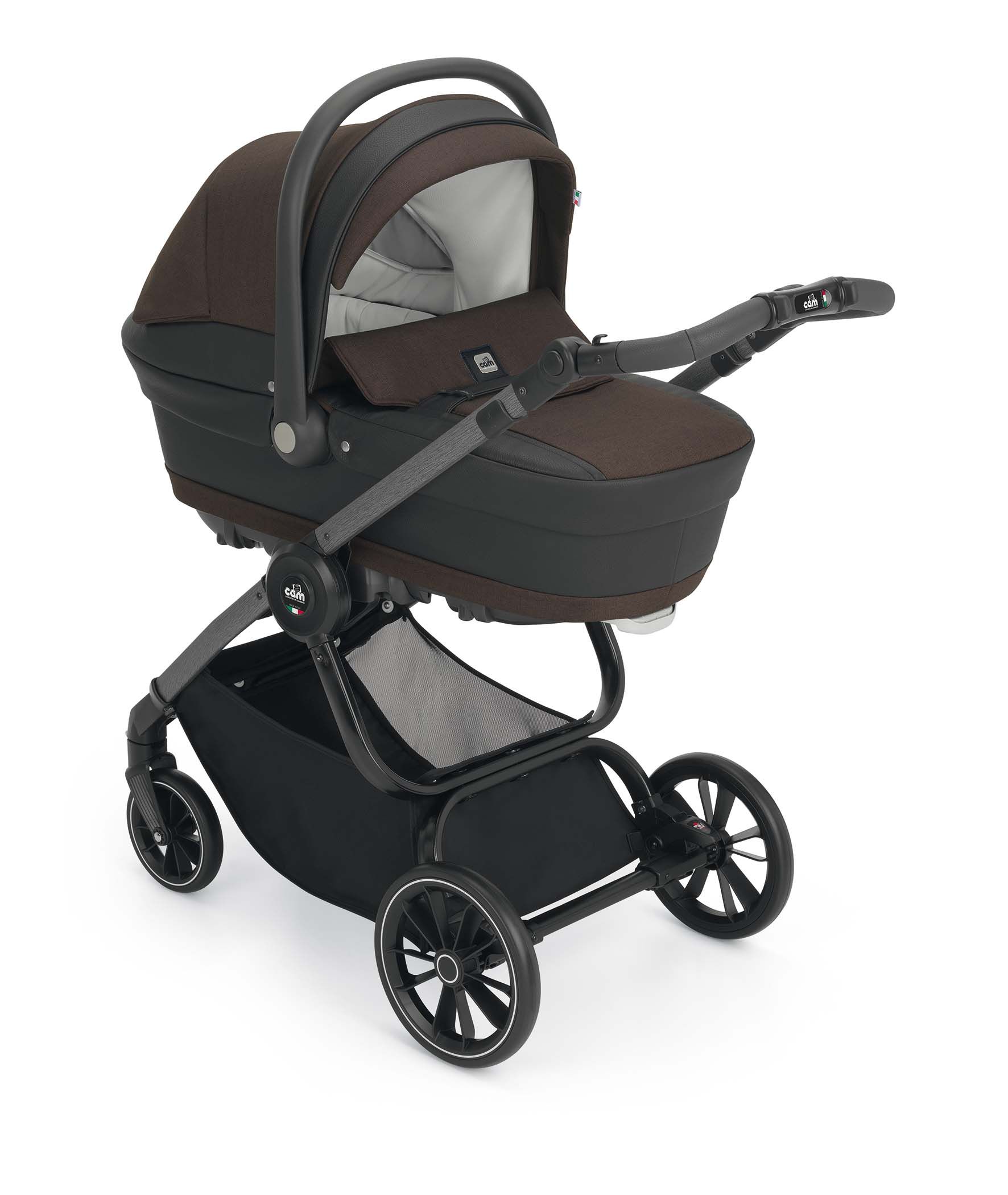 Podvozok ku kočíku je dodávaný v troch farebných variantoch: BIANCO Carbonia, NERO Carbonia a ALLMINIO spazzolato. Výškovo nastaviteľná rukoväť s detailom ručného prešívanie v eko koži. Odpružená kolesá s guličkovými ložiskami. Priestranný nákupný košík. Jednoduché skladanie podvozku a kompaktné rozmery pri zložení uľahčí manipuláciu.