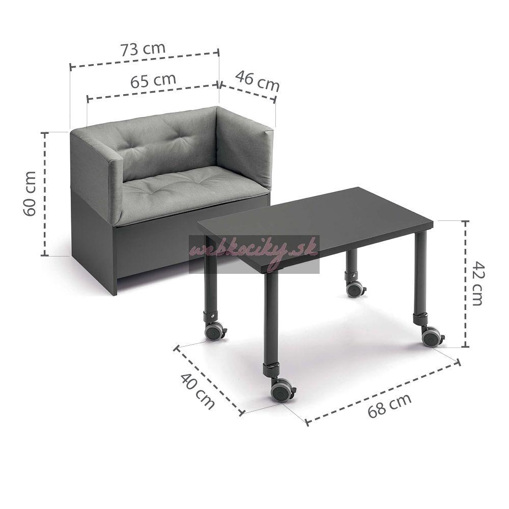 V momentě, kdy dítě již nebude přebalovací pult potřebovat, lze komodu jednoduše přestavět na praktickou dětskou pohovku s úložným prostorem a stolkem, kde může dítě odpočívat či si hrát nebo malovat. Měkké polstrování gauče je součástí balení.