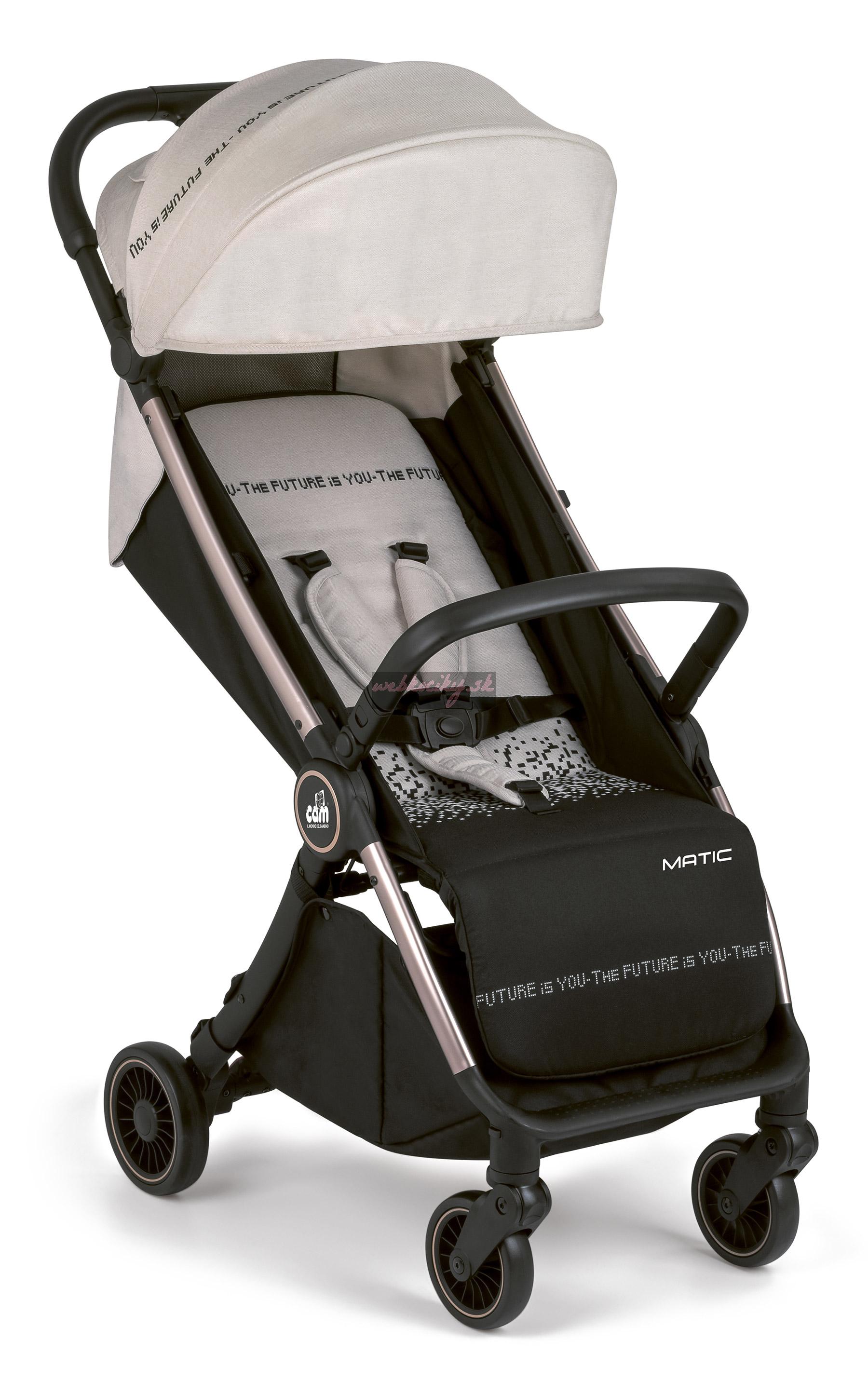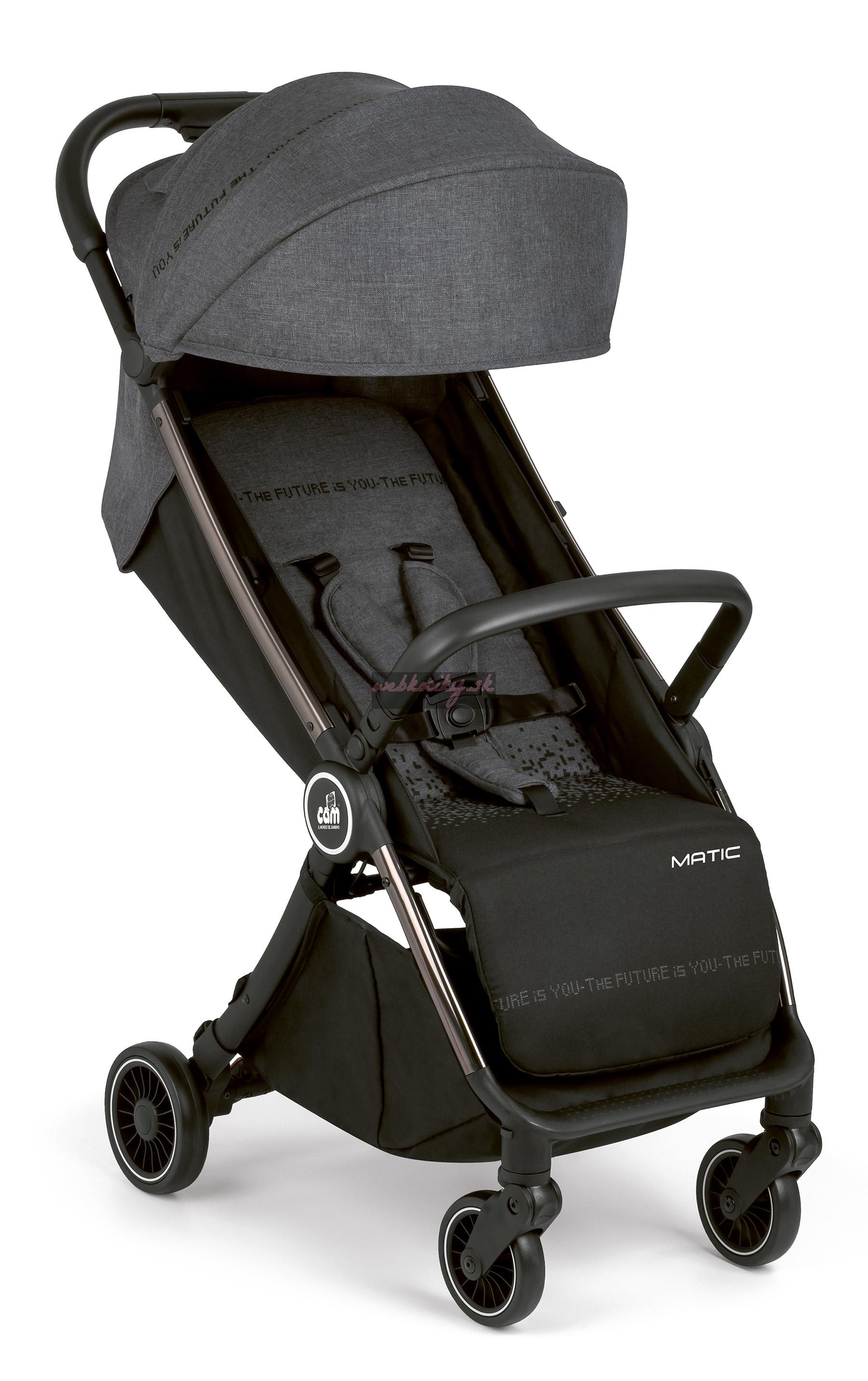S hliníkovým rámom, niekoľko pozičným operadlom vhodným od narodenia, širokým a hlbokým sedadlom, rukoväťou, odnímateľným a skládatelným nárazníkom, prednými otočnými kolieskami, centralizovanú brzdou, mäkkým predným a zadným odpružením, 5 bodovým bezpečnostným pásom polstrovanými ramennými chráničmi a nákupným košíkom na odkladanie potrebných vecou je ideálnym spoločníkom na prechádzky či všade na Vašich cestách.