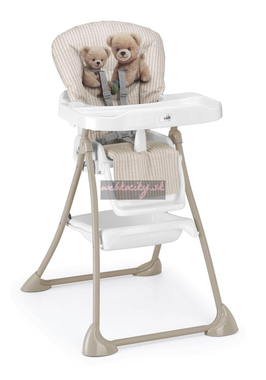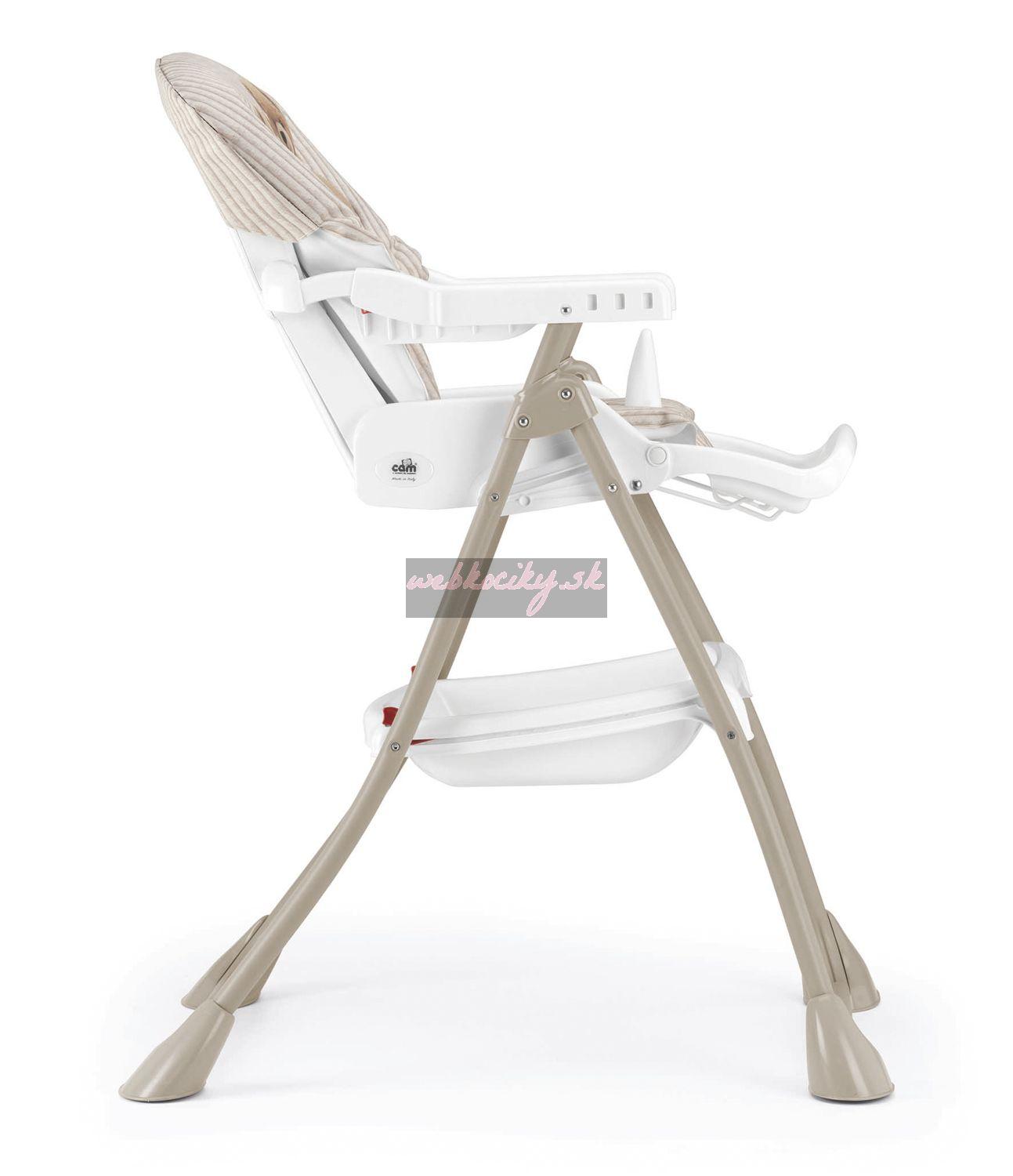 Stolička je vybavená priestranným jedálenským pultom, ktorého výšku možno nastaviť podľa potreby. Mäkko polstrované sedadlo možno polohovať do 3 rôznych polôh.