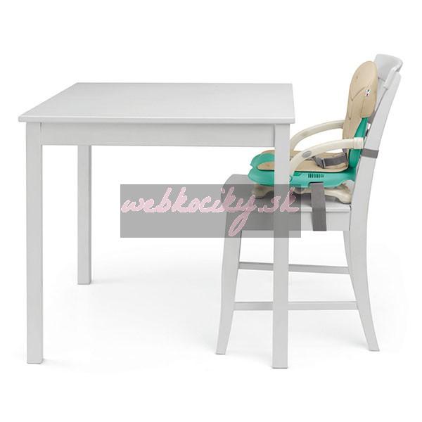 Je vybavena zvláštními popruhy, pomocí nichž lze pevně přivázat židličku ke klasické kuchyňské židli.