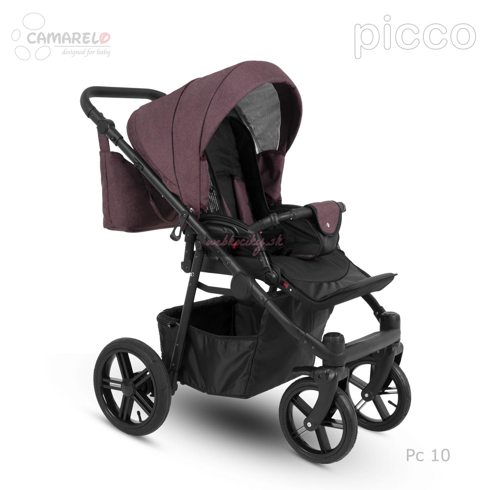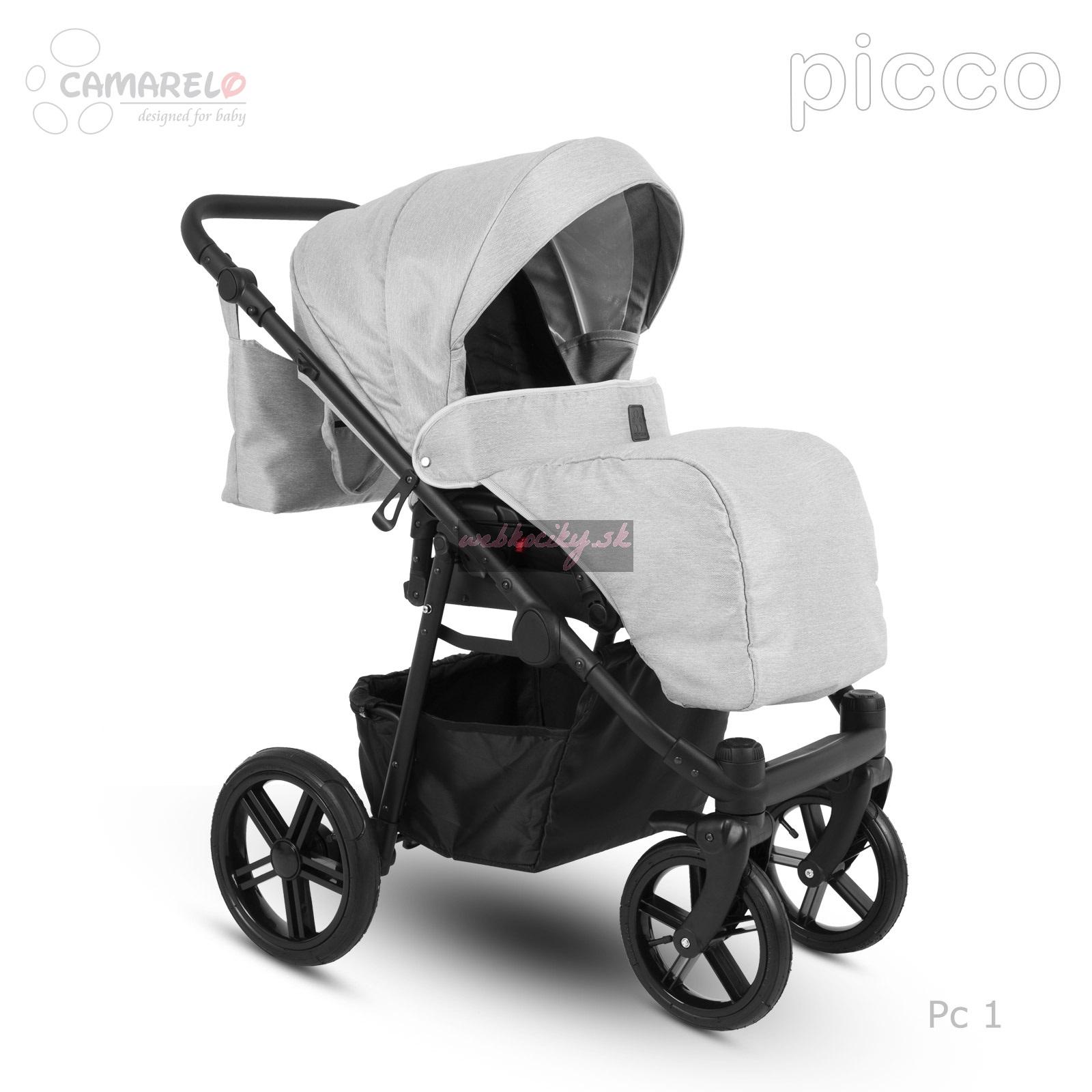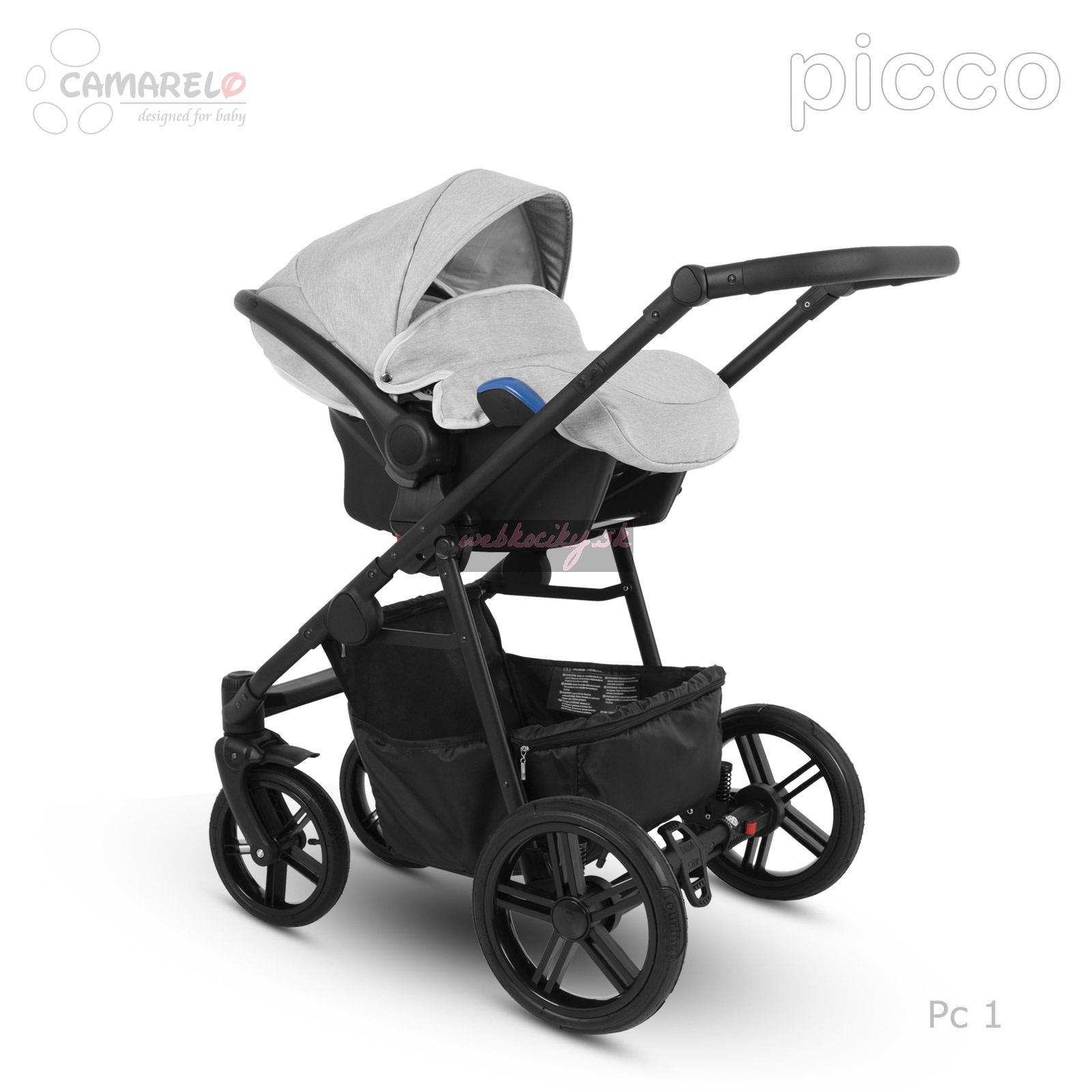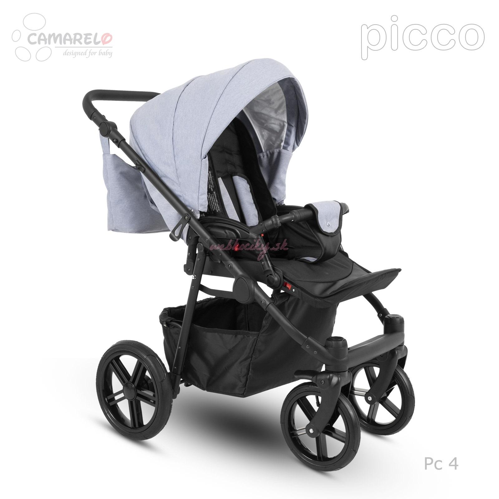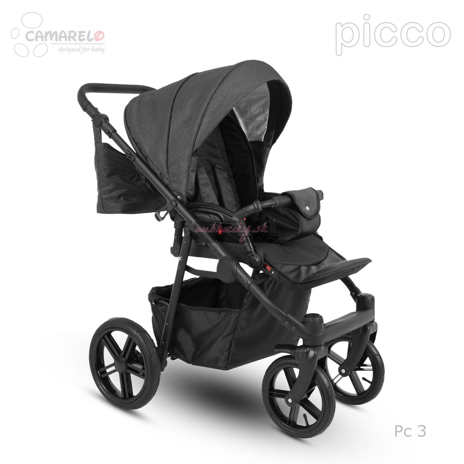 Firma Camarelo má dlhoročné skúsenosti s výrobou detských kočíkov. Za túto dobu prechádzali kočíky od tejto firmy rôznymi zmenami a vylepšeniami, podľa najnovších trendov modernej doby a podľa požiadaviek rodičov. Kombinovaný kočík Camarelo Picco v sebe spája moderný dizajn, jednoduché a pohodlné používanie a bezpečie a komfort pre dieťatko. Všetky tieto vlastnosti robia z tohto kočíka správnu voľbu, s ktorou budete pri jej výbere určite spokojní. Kombinovaný kočík Camarelo má odľahčenú hlinikovú konštrukciu s otočnými prednými kolesami s možnosťou aretácie. Všetky kolesá sú gélové. Športová i hlboká korba s možnosťou nasadenia v i proti smeru jazdy. Možnosť dokúpenia autosedačky vo farbe poťahu kočíka s upevnením na konštrukciu.
