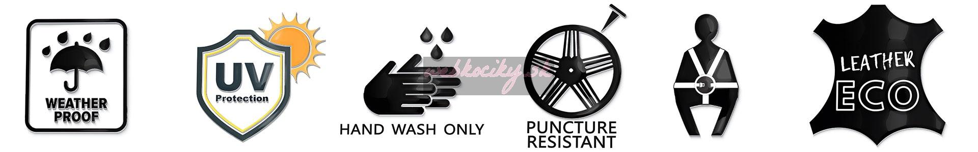 - 5-bodové bezpečnostné pásy, ktoré sú výškovo nastaviteľné