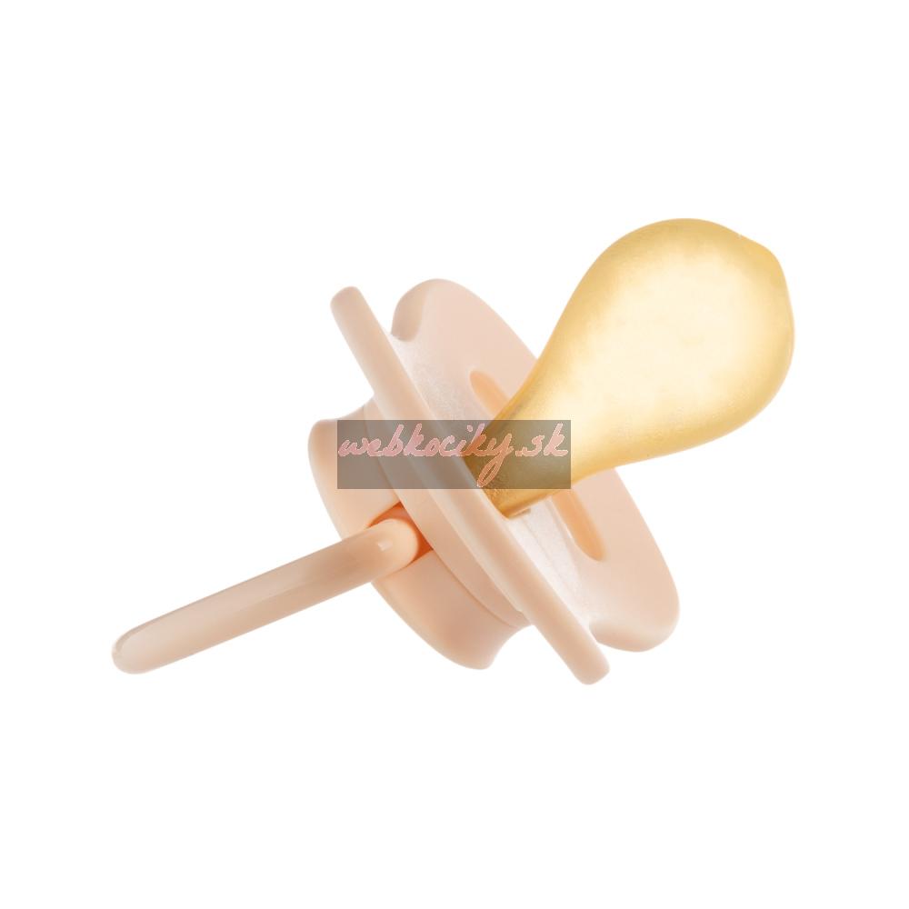 Kaučukový cumlík so špičkou okrúhleho tvaru v prírodných farbách z kolekcie NUDE. Je vyrobený z prírodného kaučuku, ktorý je charakteristicky žltkastý a matný.