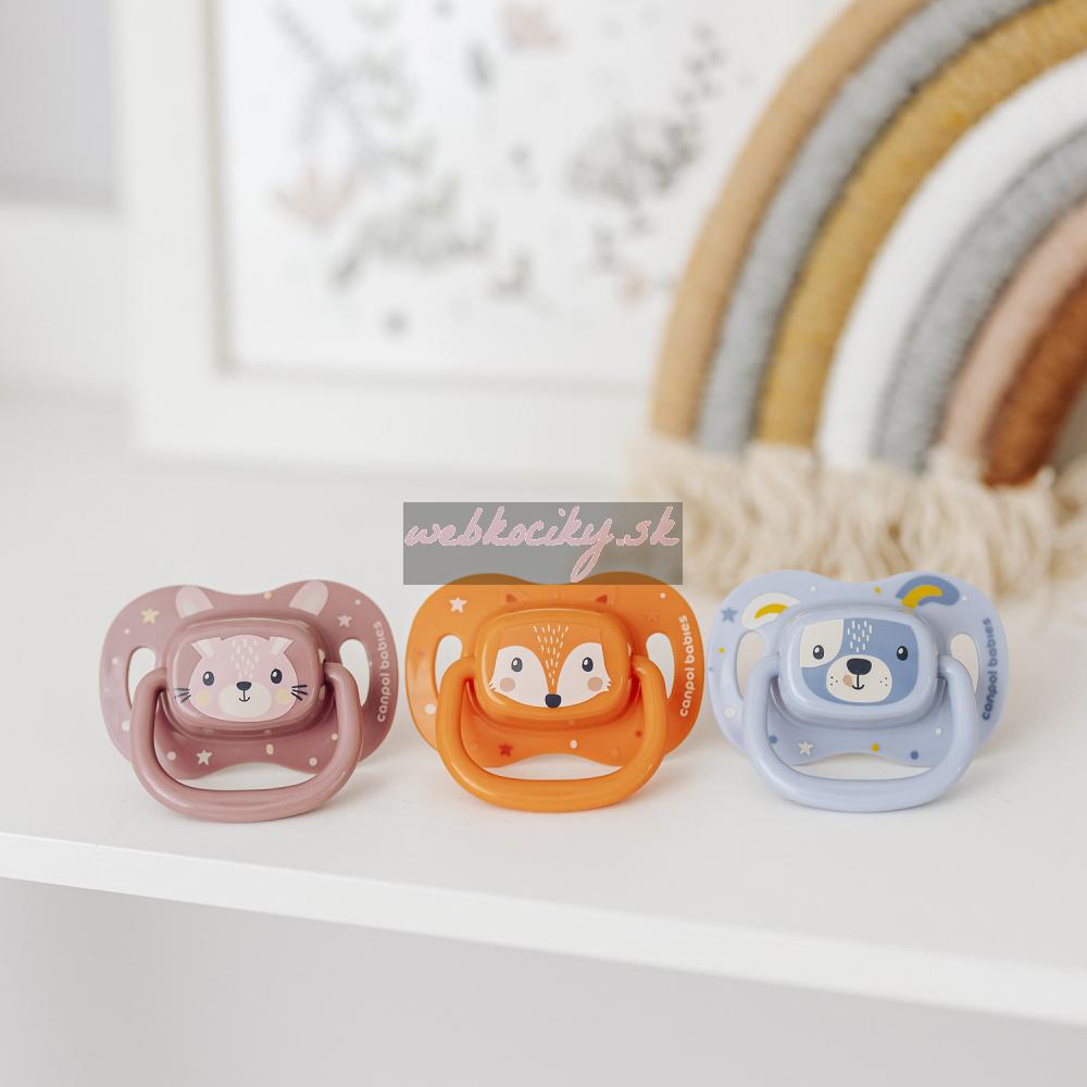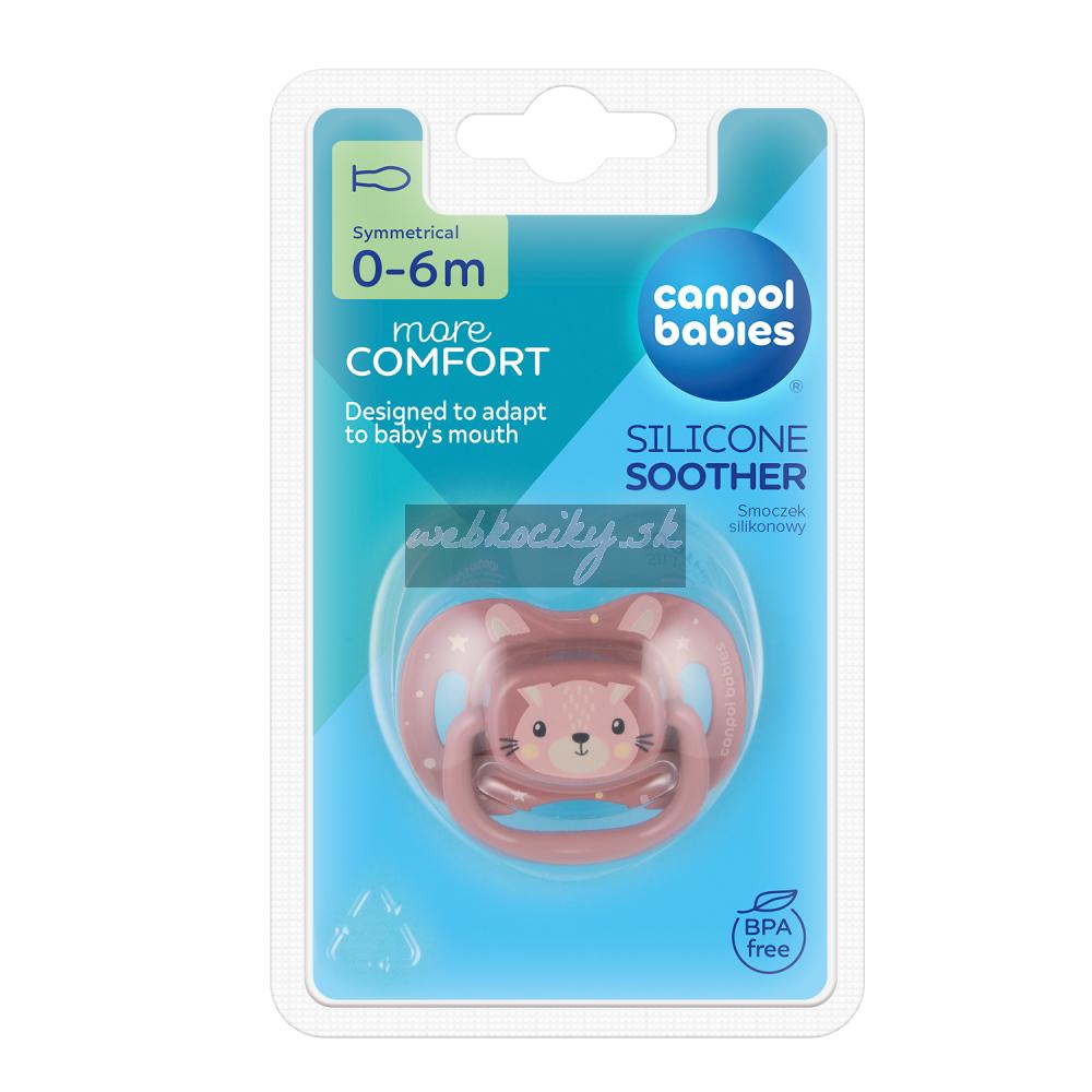 CANPOL BABIES Cumlík silikónový symetrický Cute animals 0-6m 1ks ružový