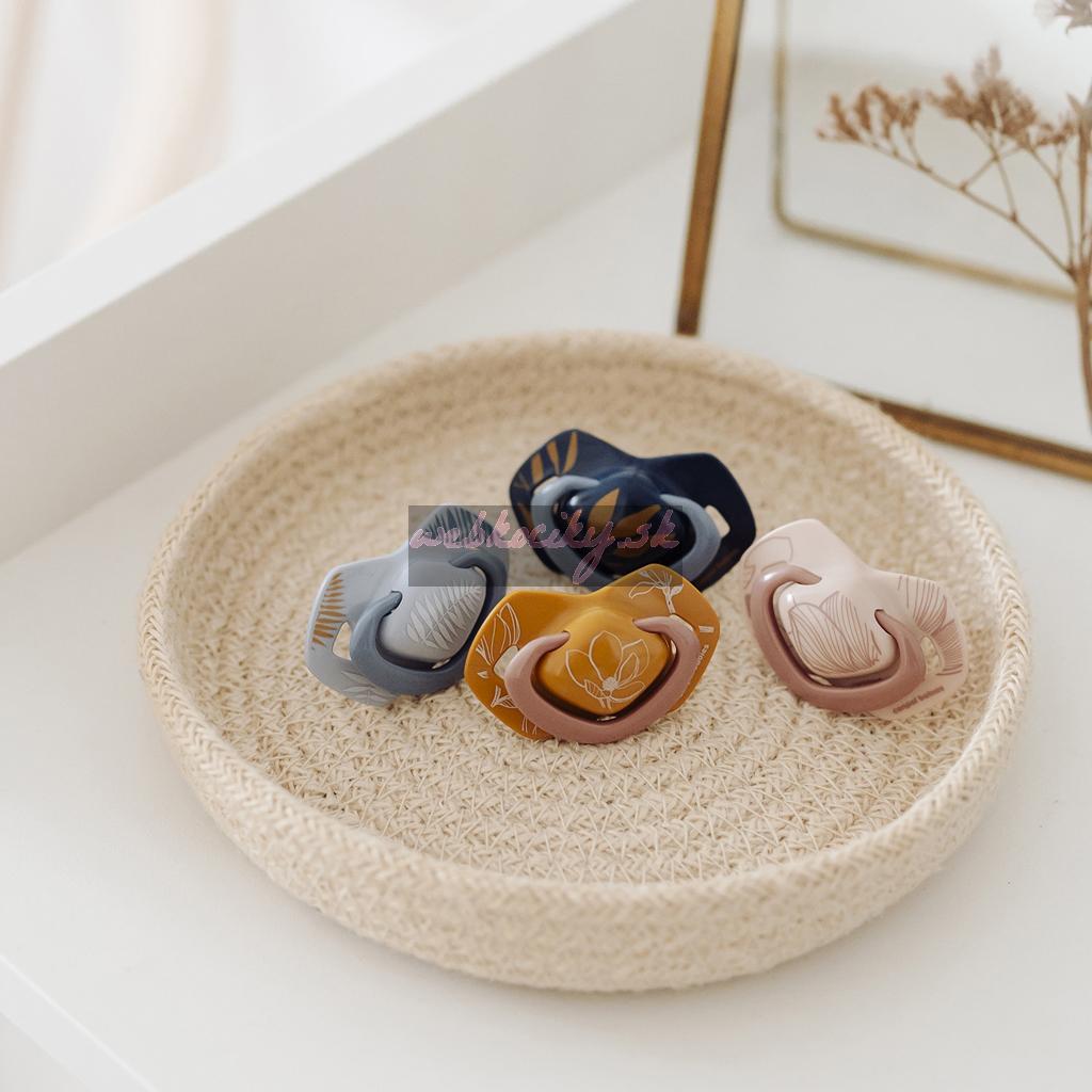 - Špeciálne tvarovaný štítok umožňuje dieťaťu voľne dýchať nosom a minimalizuje tak odtlačok cumlíka na jemnú tvár bábätka.