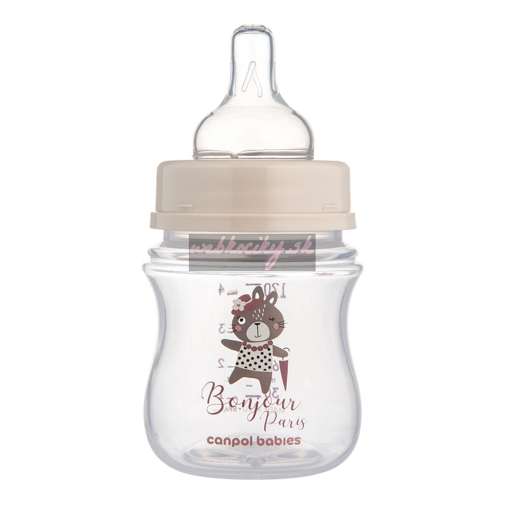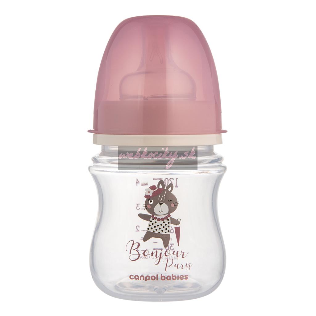 CANPOL BABIES Fľaša so širokým hrdlom Bonjour Paris 120 ml ružová