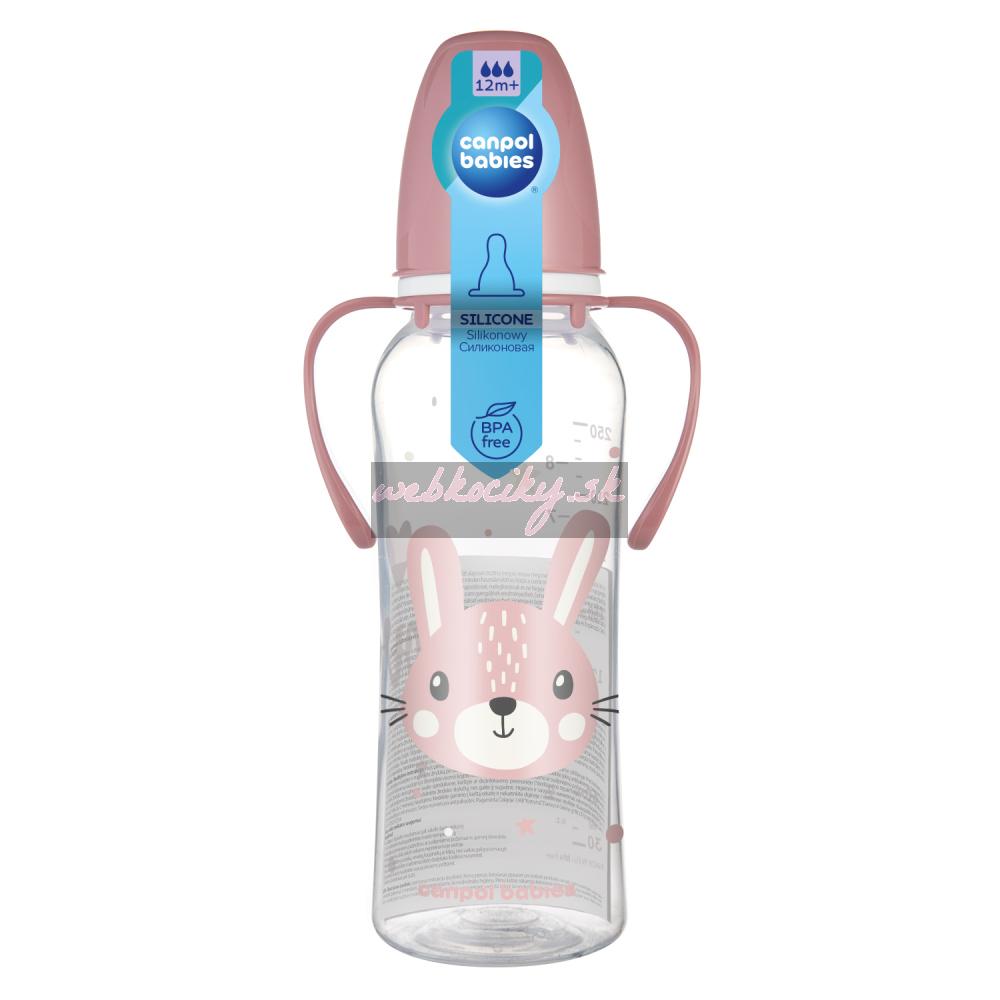 Canpol babies Fľaša úzkohrdlá s úchytmi CUTE ANIMALS 250ml zajac