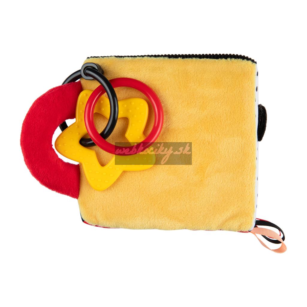 Mäkká kontrastná kocka z kolekcie BabiesBoo má mnoho senzorických prvkov, ktoré povzbudzujú k hre a podporujú rozvoj zmyslov od prvých okamihov života: zrak, sluch a hmat. Šuštiace prvky, hryzačka, zrkadlo alebo jemne zvoniaca hrkálka sú pre dieťa zaujímavé pri prvom objavovaní sveta. Mäkká senzorická kocka v kontrastných farbách, ktoré novorodenci vidia ako prví, podporuje správny vývoj zraku dieťaťa. Univerzálny krúžok umožňuje pripevniť hračku na postieľku, kočík, hojdacie kreslo alebo autosedačku. Senzorická kocka tak poskytne vášmu dieťatku zábavu doma, na prechádzke alebo na cestách. Hračka je vyrobená z mäkkých a na dotyk príjemných materiálov tak, aby rozmanitosť textúr stimulovala rozvoj zmyslov vášho dieťatka. Kocka má vrecko, do ktorého si dieťatko môže schovať hryzátko pripevnené na stuhe a tým aj precvičiť manuálnu zručnosť. Flexibilné hryzátko poskytne vášmu dieťatku úľavu v období prerezávania zúbkov, masíruje ďasná a upokojujú svrbenie spôsobené prerezávaním prvých zúbkov. Hračka pre prvé týždne života vášho bábätka odporúčaná fyzioterapeutom. Kontrastná kocka pre bábätká je skvelý spôsob, ako sa hrať poležiačky na brušku, podporuje rozvoj sluchovej a pohybovej koordinácie a tiež precvičuje zrakové, hmatové a motorické vnímanie u dieťatka. Ideálne pre deti od prvých okamihov života.