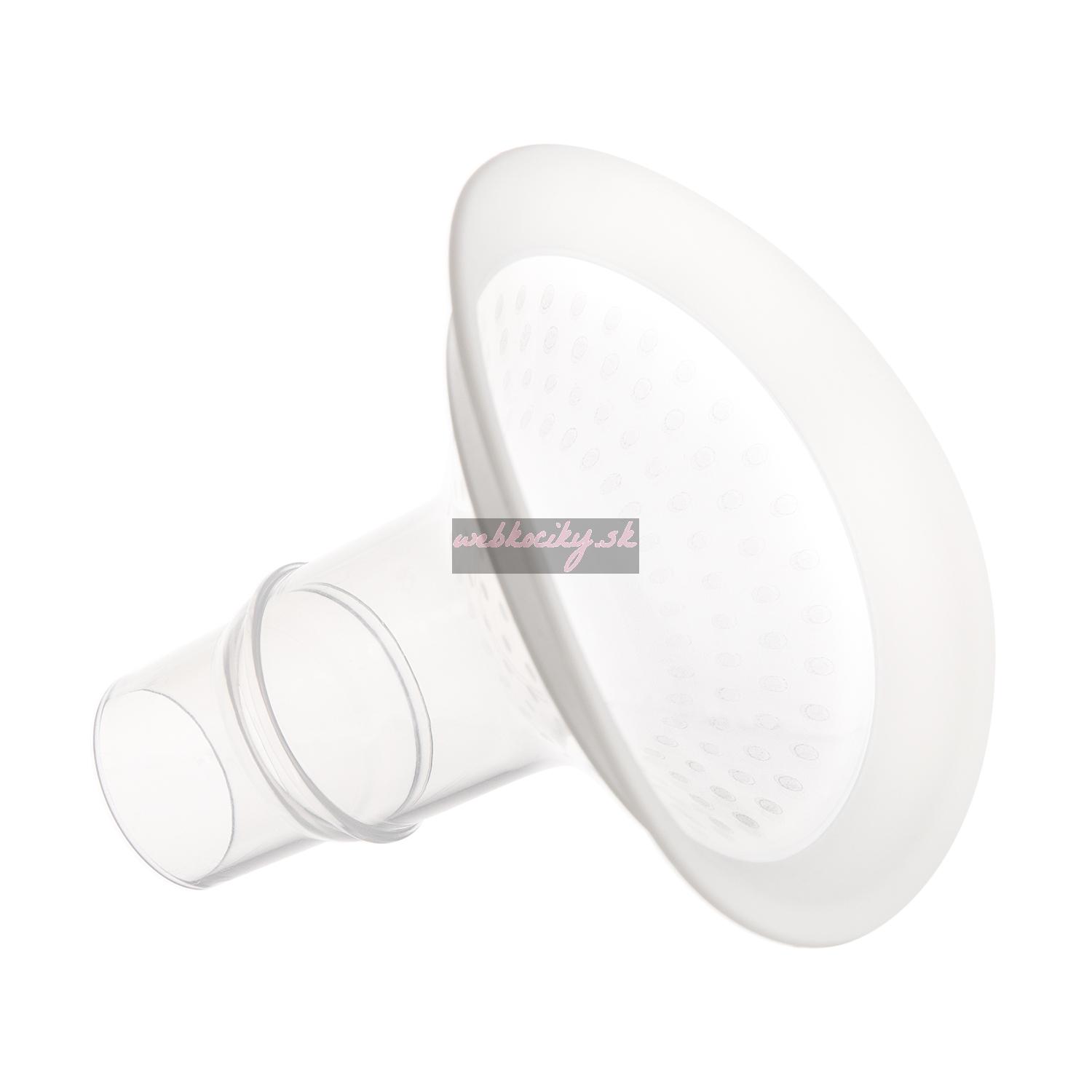 - Zvyšuje účinnosť odsávania mlieka a pomáha dosiahnuť optimálny prietok mlieka. Pružný a ergonomický okraj lievika - prispôsobí sa rôznym tvarom prsníkov.