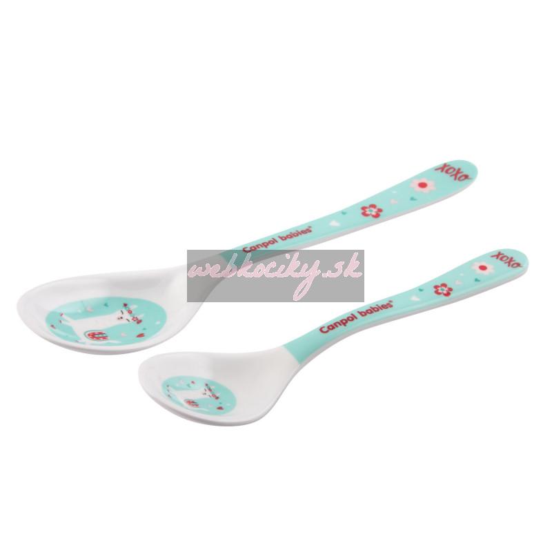 Lyžice na kŕmenie z melamínu odolného voči poškriabaniu.