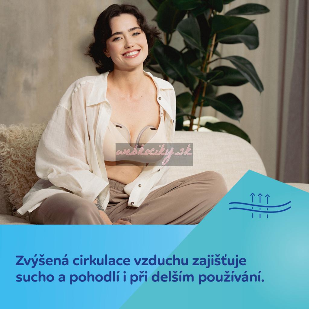 Integrované tvarovacie vypchávky zostávajú na svojom mieste pri nosení aj praní. Podprsenka bezpečne udržuje odsávačku materského mlieka a podporuje efektívne odsávanie. Je príjemná na koži a pohodlná aj pri spánku či nočnom dojčení. Zvýšená cirkulácia vzduchu zaisťuje sucho a pohodlie aj pri dlhšom sedení/odsávaní.