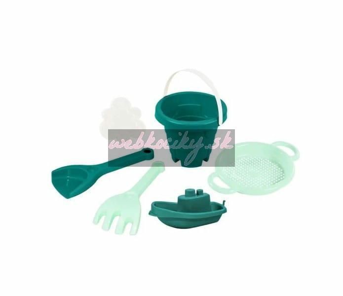 Sada do piesku je hračka určená na hru na pieskovisku alebo na pláži. Sada obsahuje vedierko vo výške 13 cm, hrable, lopatku, sitko a 2 formičky. Sada je vyrobená z kvalitného, zdravotne nezávadného plastu.