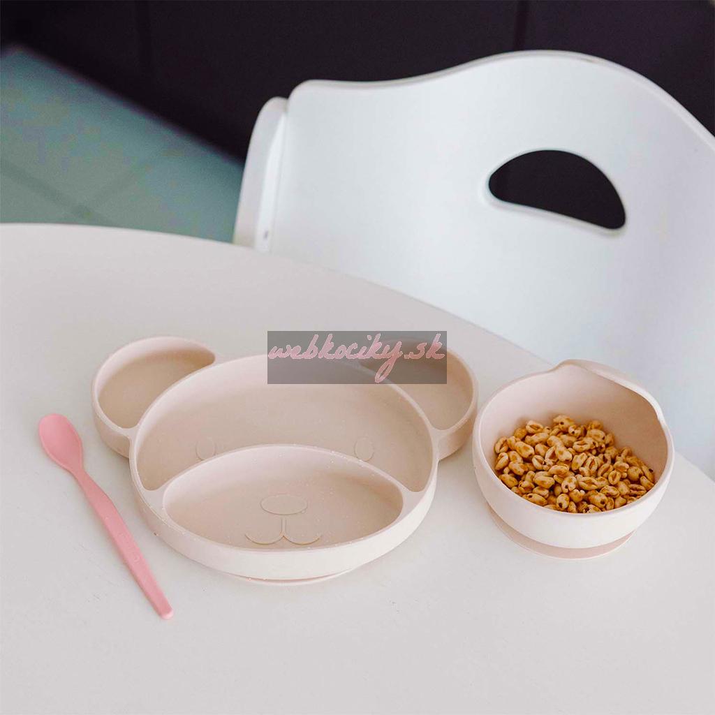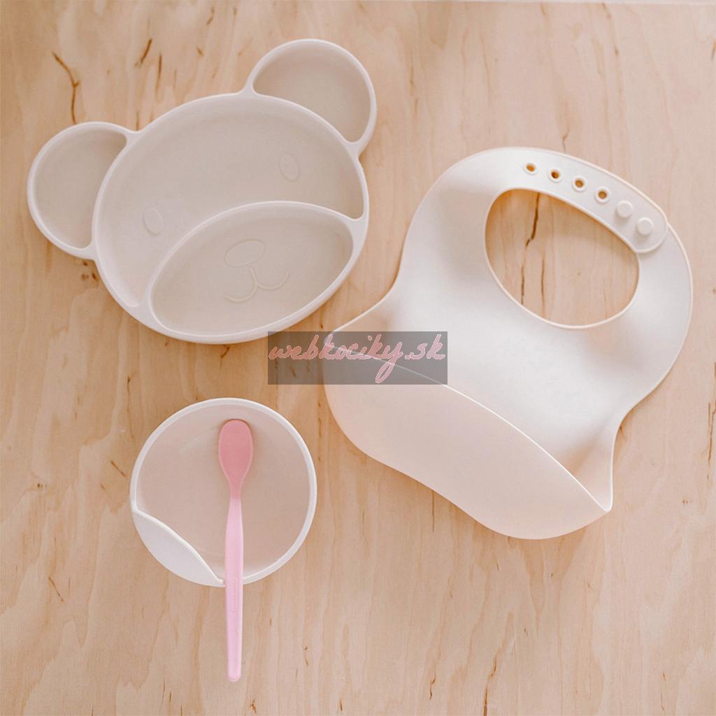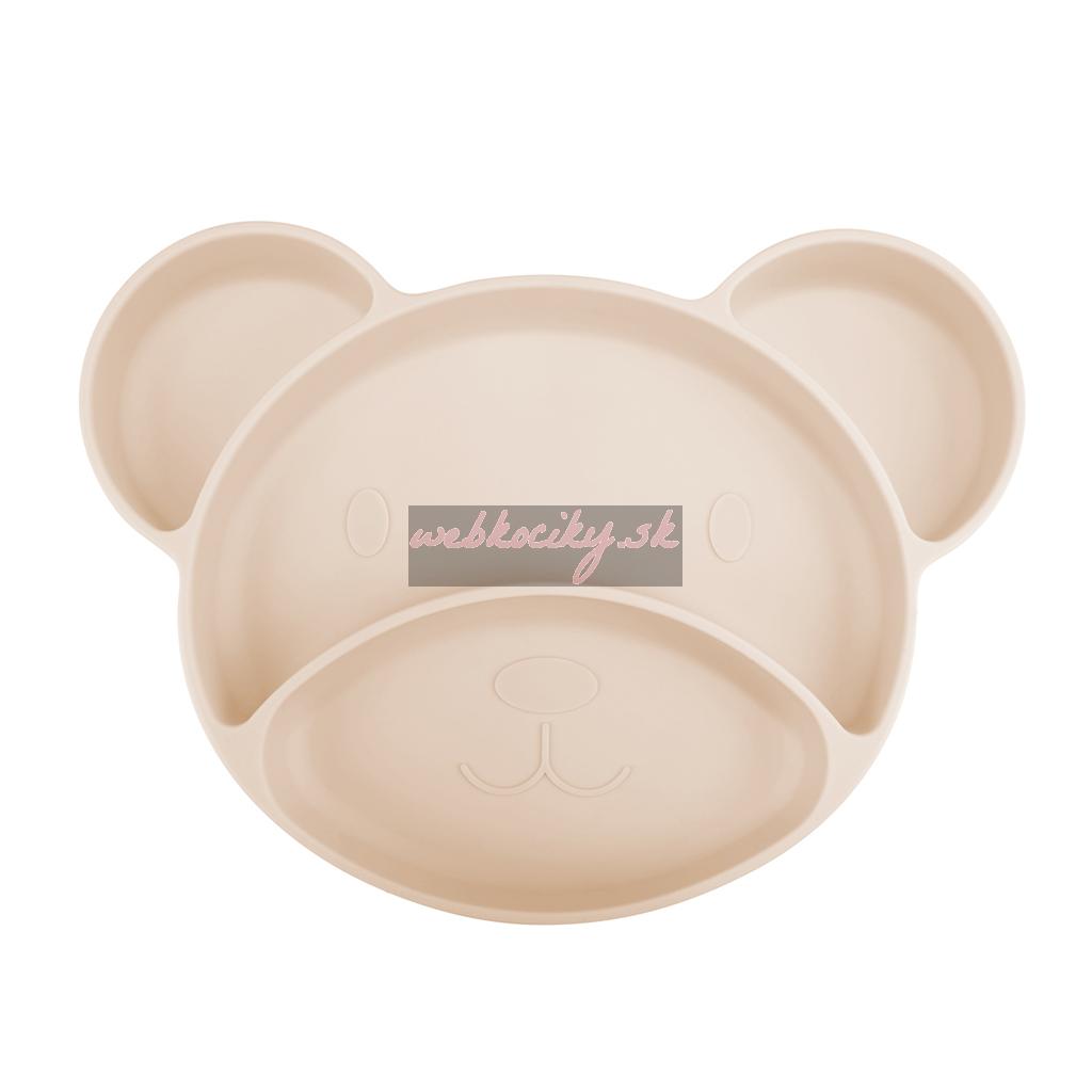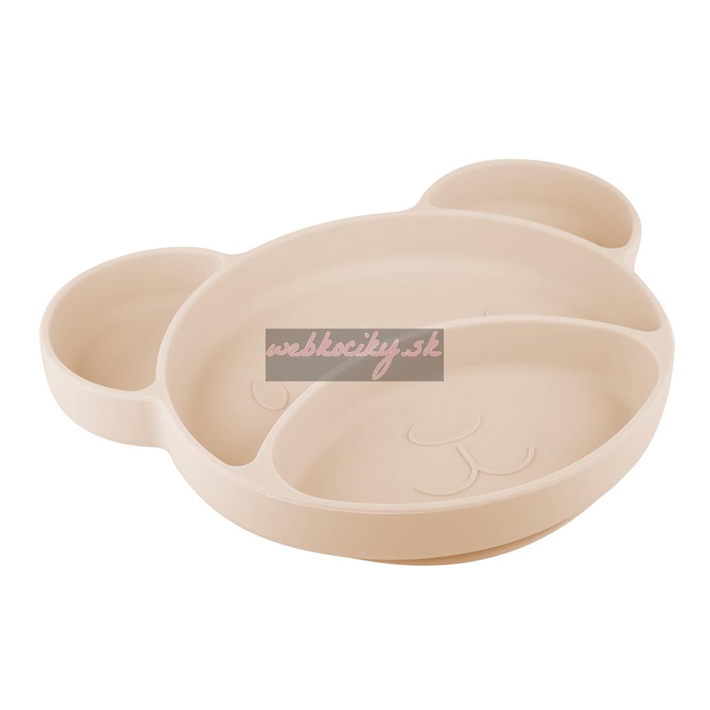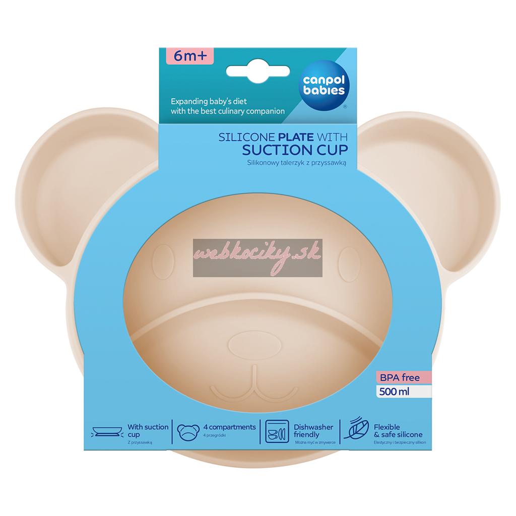 CANPOL BABIES Tanier silikónový delený s prísavkou Macko - krémový
